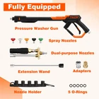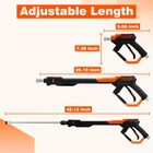 Elevate your cleaning game with our High-Pressure Washer Gun Kit, designed to deliver exceptional performance for all your outdoor cleaning needs. With a powerful output of up to 5000 PSI, this pressure washer wand is perfect for tackling stubborn dirt and grime on cars, patios, driveways, and more. The kit includes a versatile pressure washer extension wand, allowing you to easily switch between a short gun for tight spaces and a long wand for reaching elevated areas. This flexibility ensures you can clean hard-to-reach spots without physical strain. User comfort is paramount, which is why our power washer gun features an ergonomic handle that reduces fatigue during extended use. The safety trigger lock ensures peace of mind, preventing unintended operation while you work. Included in the kit are five nozzle tips, each designed for specific cleaning tasks. Whether you need a narrow jet for tough stains or a broad spray for rinsing, our pressure washer spray gun has you covered. With M22 fittings, this pressure washer gun kit is compatible with most pressure washers, making it a versatile tool for both professionals and DIY enthusiasts. Upgrade your cleaning arsenal today and experience the difference! Powerful Performance: Our pressure washer gun is engineered for maximum efficiency, delivering an impressive 4000 PSI and high flow rates, making it ideal for heavy-duty cleaning tasks. Whether you’re washing cars, driveways, or patios, this high pressure water gun is designed to tackle tough grime with ease. Dual-Purpose Nozzle: This pressure washing gun kit features a dual-purpose nozzle with a poppet valve, enabling easy switching between soap and rinse modes. It also supports foam cannon attachment for rich foam washing. This multifunctional design eliminates the need for multiple tools, making cleaning more efficient. Versatile Wand Extensions: The kit includes a pressure washer extension wand that allows you to adjust the length for various cleaning applications. Easily switch between a short gun for tight spaces and a longer wand for reaching high areas, ensuring you can clean every corner without straining. User-Friendly Design: Equipped with a comfortable grip and easy-pull trigger, our power washer gun minimizes hand fatigue during extended use. The pressure washer handle is designed for ergonomic operation, featuring a safety trigger lock to prevent accidentally touching the switch while cleaning. Complete Accessory Set: This pressure washer gun kit comes with five interchangeable nozzle tips, allowing you to customize the spray pattern for different tasks. From a concentrated jet for tough stains to a wider spray for rinsing, you have all the options you need for effective pressure washing. Universal Compatibility: Designed with M22 fittings, this pressure washer guns kit is compatible with most pressure washers, making it a versatile addition to your cleaning arsenal. It’s perfect for both gas and electric models, ensuring that you can use it with your existing equipment without hassle.
