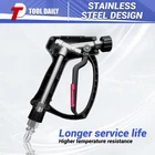 【Powerful and Efficient Cleaning】The pressure washer gun swivel delivers a maximum pressure of 5800 PSI and a water flow rate of 12 GPM. It is suitable for various scenarios such as different car models, urban roads, farm breeding grounds, and parks. With its impressive strength to break down and remove dirt, it ensures efficient completion of cleaning tasks while saving time and effort. 【Tangle-Free Swivel Connector】Our pressure washing gun is equipped with a unique swivel 3/8" quick connect fitting. Designed to handle cleaning tasks from various angles, it effectively prevents hose tangling, ensuring efficient and flexible cleaning. After use, it can be conveniently stored and organized. 【Flexible Extension Kit】To meet the high-pressure cleaning needs in various scenarios, our high pressure washer gun comes with a stainless steel extended lance and a 1-piece extension rod. With a maximum length of 40 inches, you can easily adjust the length according to your application requirements. 【Safe and Durable】- The extended lance and suction tube of our powerful cleaning machine are constructed with reinforced materials and stainless steel components, ensuring long-lasting leak-proof performance. The easy-to-pull trigger and comfortable grip are ergonomically designed to prevent hand fatigue during prolonged cleaning tasks. pressure washer spray gun is equipped with a safety trigger lock, preventing accidental operation during cleaning. 【Heat Resistant】Designed to withstand temperatures up to 320℉ (160℃), this pressure washer gun with swivel is capable of effortlessly tackling even the toughest grease and oil-based dirt. Its robust construction ensures optimal performance in challenging cleaning tasks. Pressure washer gun replacement is compatible with multiple high-pressure nozzles, foam cannons, surface cleaners, undercarriage cleaners, and other accessories, providing a wide range of cleaning options.