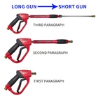 NOT for water hose or garden hose. Package include: handle, 15 inch , 16 inch extension wand, 5 nozzles, M22 14mm female to M22 15mm male connector, M22 14mm female to 1/4 inch quick connector and 5 O-rings Attention: This product is only suitable for high-pressure washers and high-pressure water hose, NOT FOR WATER HOSE or GARDEN HOSE. There is a safety trigger lock in the place of the to prevent accident If the hose connector is M22 with an inner diameter of 14 mm, connect directly. If the hose connector is M22 with an inner diameter of 15 mm, use the brass connector to connect the and the hose, otherwise it may cause Leakage. high pressure washer is available in 3 lengths: 40", 25", and 9". It can be connected to any product with 1/4 quick connector, such as: nozzle, rotating nozzle, undercarrier cleaner, surface cleaner, extension wand ect. NOT for water hose or garden hose. This product contains 5 nozzles, the nozzles have different angles (0, 15, 25, 40, 65), allowing you to choose nozzles with different angles according to your needs