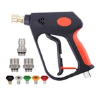 ✔5000 PSI Working Pressure. The highest pressure washer , ideal for homeowners and professionals, perfect design for car cleaning, windows washing, driveways, roofs, siding washing... ✔Ergonomic and Soft Pull desgin, reducing your hand fatigue operation. The features a locking safety handle to prevent accidental sprays. ✔5 pressure washer spray tips Included,Use for a wide range of spray patterns and applications ✔Universal for Most high pressure washers, with 3 adapters, easy connect to pressure washer hose with 3/8 NPT thread inlet fitting, Quick Connect 3/8” Pressure Washer Hose, M22-14mm Washer hose or M22-15mm Power Washer Hose. ★For pressure washer use only Not fit Garden Hose or Water hose. An extra teflon tape is included. ♦Please apply Teflon tape on all thread connections before use to avoid any leakage. ✔1/4" outlet quick disconnect fitting, connect all accessories to the with a 1/4 inch plug. Such as nozzle tip, pivot coupler, foam , extension wand, etc.