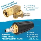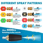 Return Policy Fast Delivery Trusted seller Pressure Washer Tips Turbo Nozzle, 4000 PSI Max, 360°Rotating Spray Turbo, 7 Spray Nozzles, Gutter Cleaner 240° Pivoting Coupler, 1/4”Quick Connect, 7 Angles for Cleaning Brick, Concrete Product Description Turbo Nozzle Pressure Washer: 1/4" quick connect design, with 4.0 GPM water flow and 360° rotating jet, up to 4000 PSI max, wash with a pinpoint stream to expand the cleaning area. Fit most high pressure washer wands. High Performance Quality: Made of high quality ceramic core, brass and premium rubber exterior, Turbo Nozzle is wear resistant, rust-proof and anti-aging. Create a 360° powerful water jet to help you improve cleaning efficiency. Different Jet Angle: nozzle tips are constructed from high quality stainless steel and brass, you can choose different angles jet nozzle according to the actual needs. Complete set: 1 Rotating Turbo Nozzle, 1 Black Brass soap nozzle,1 Red Stainless Steel Nozzle Tip (0 Degree),1 Yellow Stainless Steel Nozzle Tip (15 Degree),1 Green Stainless Steel Nozzle Tip (25 Degree),1 White Stainless Steel Nozzle Tip (40 Degree), 1 Blue Brass Rinse Nozzle, 1 Pink Brass Soap Nozzle, 1 Nozzle Cleaning Accessories. Clean Easy--4.0 GPM turbo nozzle is suitable for cleaning concrete, block, stained brick, paving stone and most exterior surfaces such as garage floors. Turbo nozzle tip kit allows you to clean hard-to-reach areas quickly and easily without a ladder. Shipping Returns Payment Shipping Shipping is FREE to all addresses other than APO/PO boxes in the lower 48 states. All our stock ships from US-based warehouses. Shipped via USPS or UPS (depending on location and package weight) Unless stated otherwise, all orders will ship within 24-72 hours of your payment being processed. Check our feedback to see the great reviews of FAST shipping we offer. Returns Seller does not accept returns Payment We currently accept payment via eBay managed payments only. Once payment is cleared, we will dispatch your shipment within 1-3 business days. Please refer to the "Shipping" tab for more information regarding shipping speed to your destination.