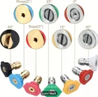 Product Description Product: Swivel Nozzle Nozzle Connector: 1/4 Quick Disconnect Maximum Working Pressure Up To 4000 PSI. (1000 PSI To 4000 PSI For Electric Washing Machines) The Water Temperature Varies From 60 F To 140 F. Material: Rubber Outer Layer, Copper Inner Layer, Stainless Steel Cover. Hole Size 2.5 Working Pressure: 100-350 Kg Scope Of Application: Rust Removal, Decarking, Cleaning Packing List: 1 Turbo Nozzle 1 1/4 Quick Connect Plug 7 Nozzles 7 Nozzle Tips With Different Spray Patterns. Red 0, Yellow 15, Green 25, White 40, Black 60. Soap Mode (pink). Download Mode (blue). Choose Different Angles Of Spray Nozzle According To Actual Need. Pressure Washers With Turbine Nozzle Are Designed For Hot And Cold Water In High Pressure Cleaning.