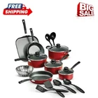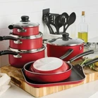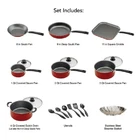 Tramontina\\'s prima ware 18-piece nonstick cookware set provides all the cookware essentials and is an excellent starter set. The patterned interior nonstick coating ensures easy cooking and simple cleanup. Available in two colors, the dishwasher safe cookware set makes prepping meals for one to many a breeze. Coordinating utensils and pots make this collection both practical and functional. This aluminum cookware set is lightweight and can be used by any level meal preparation person. Stay-cool handles decrease the chance of burning yourself when you are preparing and see-through lids lets you keep close watch on progress. The Tramontina\\'s prima ware 18-piece nonstick cookware set works well with most range types. Riveted, stay-cool handles Heat and shatter-resistant tempered glass lids allow easy monitoring of cooking progress Dishwasher-safe Compatible with gas, electric and ceramic glass cooktops 8" sauté pan, 9" deep sauté pan, 11" griddle, 1 qt sauce pan with lid, 2 qt sauce pan with lid, 3 qt sauce pan with lid, 4 qt Dutch oven with lid (4 qt lid fits the 9" deep sauté pan), stainless steel foldup steamed, solid spoon, slotted spoon, solid turner, slotted turner, pasta spoon, ladle