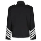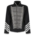This is a prime quality handmade men's Gothic military hussar jacket in black and silver, designed by Tripp Apparel. The jacket features a stand-up collar, zip closure, and button accents, with a regular fit and a short length. Made from cotton outer shell and polyester lining material, it is suitable for all seasons and occasions such as parties, casual outings, formal events, and business meetings. The jacket is adorned with various themes like biker, punk, retro, and anime, making it a unique and stylish choice for those who appreciate alternative fashion.