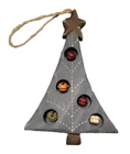 Add a touch of rustic charm to your Christmas tree with this Primitive Rustic Tree Ornament. The cut-out design showcases hanging ornaments that give it a unique and festive look. Measuring 5 inches, this small tree ornament is perfect for adding to your collection of holiday decorations. Crafted from wood, this ornament is durable and long-lasting. The multi-color design adds a pop of color to your tree, while the hanging feature makes it easy to display. Perfect for any occasion, this ornament is a must-have for any Christmas lover. Svrschpx
