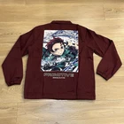 Embrace the fusion of style and comfort with the Primitive Skate Apparel Demon Slayer Tanjiro Utility Jacket. This large, burgundy canvas 3-in-1 jacket is a versatile addition to any wardrobe, featuring a spread collar and a full zip closure that adapts to all seasons. It's an ideal choice for skateboarding enthusiasts and casual wearers alike, equipped with practical pockets and accented with the brand's distinctive logo. Crafted with a cotton outer shell and a polyester lining, this jacket ensures breathability, moisture wicking, and quick-dry capabilities, making it suitable for a variety of occasions. Whether you're out for a walk or skateboarding, the mid-length cut and regular fit provide a comfortable, street-ready look. Care for this piece is effortless with its machine washable fabric, ensuring that it remains a staple in your collection through every season.