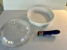 This Princess House Nouveau skillet/casserole comes in a pristine white color with a lid and detachable handle. It is perfect for cooking and serving your favorite dishes. The skillet is made of high-quality materials and features a unique design that will add a touch of elegance to your kitchen. The detachable handle makes it easy to store and transport the skillet, while the lid helps to retain heat and nutrients. Whether you're cooking up a storm or serving a formal dinner, this Princess House Nouveau skillet/casserole is a must-have for any home chef. ***In excellent “like new” condition!
