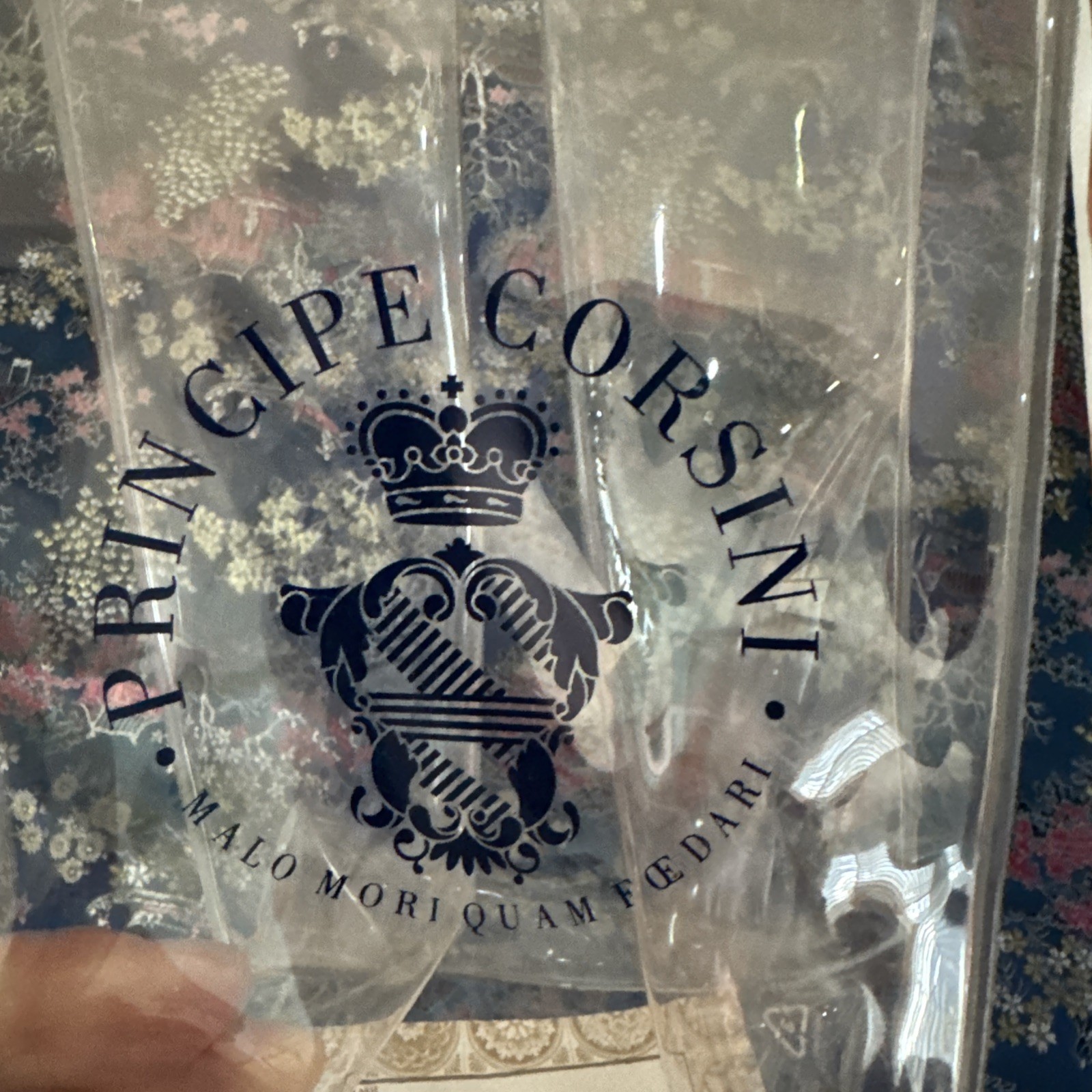 Keep your wine cool and stylish with the ICE BAG® Collapsible Wine Cooler Bag Principe Corsini. Featuring a sleek clear plastic design with a unique crown pattern and Italian castle theme, this bag is perfect for any occasion. The bag is lightweight, leak-proof, and comes with a convenient handle for easy carrying. With a length of 11 inches, width of 5 inches, and depth of 11 inches, this bag fits most standard wine bottles and keeps them cool for hours. The ICE BAG® is the perfect accessory for any wine lover who wants to keep their wine cool without sacrificing style.