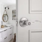 Material Metal Brand Gobrico Color Satin Nickel Product Dimensions 1.77"L x 1.38"W Exterior Finish Nickel, Zinc Style Privacy Lock Handle Type Knob, Lever Shape Drop Lever Finish Type Brushed About this item Wave/drop style door levers.10 Pack for 10 doors Reversible levers for right or left handed doors.Suitable for new doors and standard pre-drilled doors.Backset latch,Strike plate,Screws included.Easy to install with a flat Phillips screwdriver Brushed Satin Nickel Finished.Modern style door knobs locks for commercial and residential applications.Made of high-quality zinc alloy,anti rust,confirm with ANSI Grade 3,Exceeds 200,000 cycles. Fits door thickness: 35 to 45mm ( 1-3/8" to 1-3/4").Backset: Adjustable 60mm (2-3/8") or 70mm (2-3/4") Thumb-turn button locking for use on bedroom and bathroom doors or doors requiring privacyTurnbutton interior knob Lock may be opened by an emergency key in exterior Notice:The 2 long screws connecting the levers are in the pillars of the exterior lever.Please screw them out before installing. If there is any quality problem with your purchasing, please contact us. We will refund the item value or send a replacement.