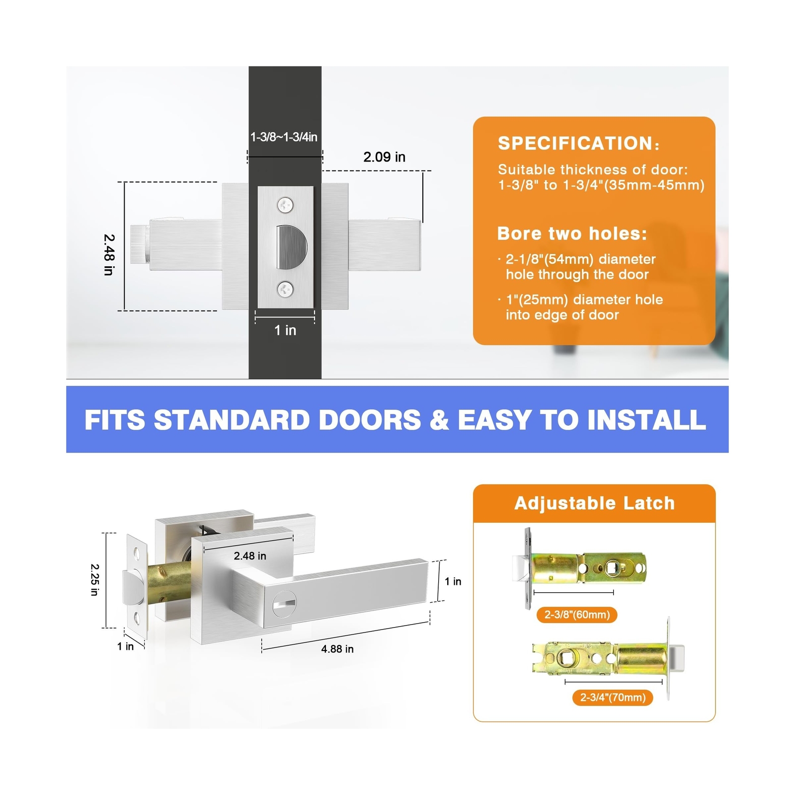 Privacy Door Lever, Heavy Duty Interior Door Handles for Bathroom & Bedroom Privacy Door Lock Handle Keyless Door Knobs in Satin Nickel for Right & Left Sided Doors, 8 Pack Product Details Size: Privacy-8 Pack Color: Satin Nickel Brand: RAZCC MPN: ZN8101 SNBK-8 UPC: Does not apply EAN: Does not apply Material: Zinc Brand: RAZCC Color: Satin Nickel Product Dimensions: 5.65"L x 5.3"W Exterior Finish: Nickel Material: Zinc Brand: RAZCC Color: Satin Nickel Product Dimensions: 5.65"L x 5.3"W Exterior Finish: Nickel Specific Uses For Product: Residential Special Feature: Easy to install Included Components: Installation accessories and instructions Lock Type: Keyless Privacy Lock Metal Type: Zinc Alloy Handle Material: Zinc Hand Orientation: Universal Package Type: Standard Packaging Unit Count: 8.0 Count Manufacturer: RAZCC Part Number: ZN8101 SNBK-8 Item Weight: 18.68 pounds Item model number: ZN8101 SNBK-8 Size: Privacy-8 Pack Finish: Satin Nickel Number Of Pieces: 8 Special Features: Easy to install Batteries Included?: No Batteries Required?: No Date First Available: September 5, 2023 PREMIUM MATERIAL: This modern style privacy door handles is sturdy and stable which is made of heavy duty zinc alloy and metal, Satin Nickel finish. SPECIFICATION: Fit standard door thickness: 1-3/8"to 1-3/4"(35mm-45mm) and adjustable latch 2-3/8"or 2-3/4"(60mm-70mm), the latch plate is non-detachable. Interior door handles is come with a square strike plate, allows you to replace your existing one PRIVACY FUNCTION: Door knobs interior with turn button( it can lock and unlock), and exterior with emergency release button. When you are locked inside, the outside can unlock the door with a coin or slotted screwdriver, no key is needed WIDE APPLICTION: This privacy interior door levers can be used both on left and right sided doors. Designed to completed both conventional and modern style interior doors for bathrooms, bedrooms, offices, rooms or other places privacy required. EASY INSTALLATION: Door handle lockset have installation instruction and necessaries fitting components in package, will help you to install it more better, installation in just a few minutes to save your time Payment Back to Top We accept Paypal and All Major Credit Cards. Shipping & Handling Back to Top Item will be shipped FREE standard shipping in 1 business day after payment is received. Express Shipping services are available. Tracking number will be provided. Return Policy Back to Top Items can be returned for exchange or full refund within 30 days from the date you receive your merchandise. Please contact us before starting a return request, so we can resolve any issues and provide free returns if needed. Return shipping is the responsibility of buyer unless the return is a result of our mistake (i.e., your receive the wrong item). Contact Us Back to Top If you have any questions please contact us. We will respond within 1 business day or less.
