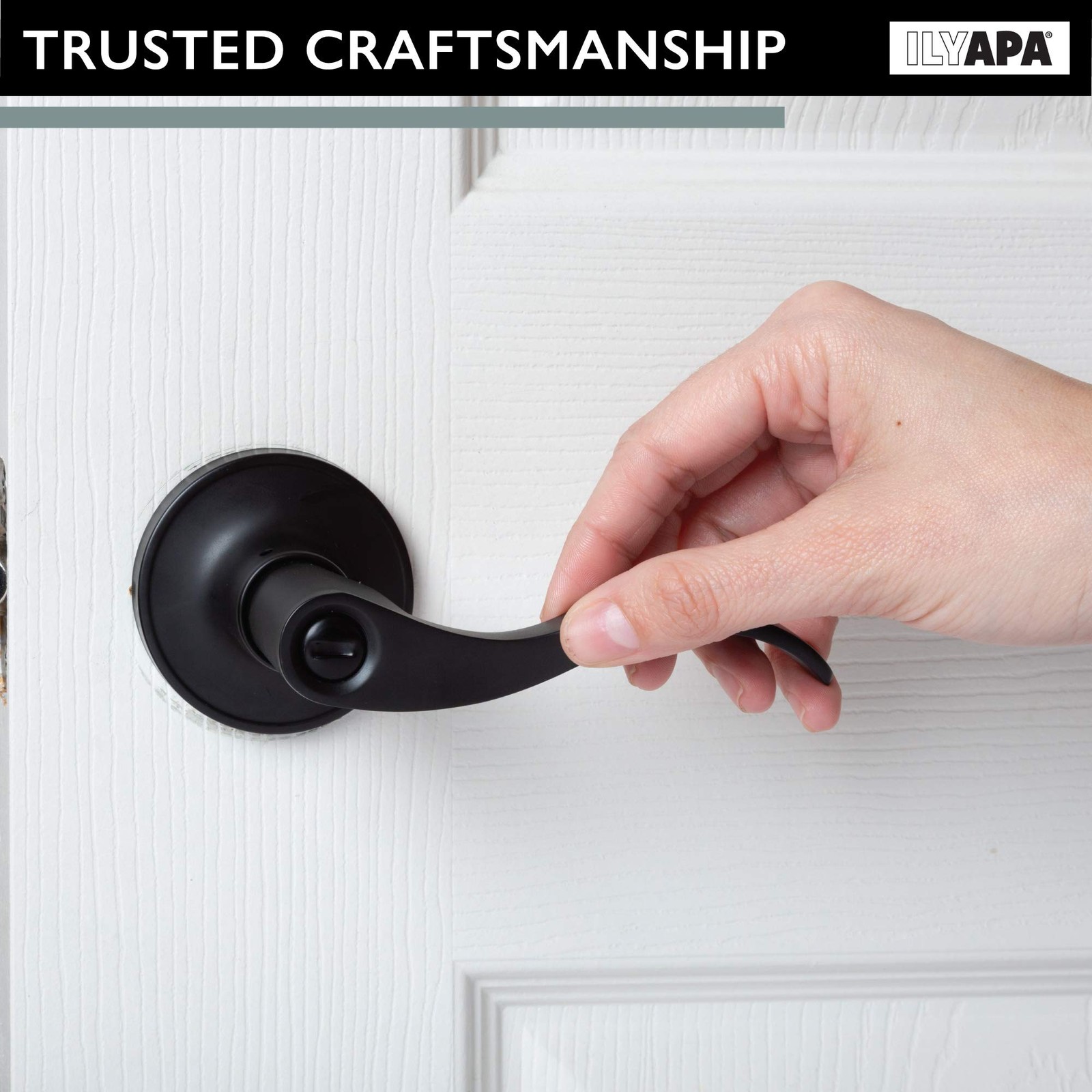 "INSTALLATION IS EASY - Install your lockset in minutes. All you need is a tool set and door- no professional help required!SMOOTH ACTION LEVER HANDLES - These lever door handles provide keyless, non-locking function with smooth operation. Perfect for closets, hallways, laundry rooms, kid's rooms, office, pantry, utility rooms, and more.REVERSABLE FOR RIGHT OR LEFT HANDED DOORS - Universal handling allows these levers to be installed on both left and right handed doors.FITS MOST DOORS - This door lever fits 1-3/8"" to 1-3/4"" doors. The backset is adjustable from 2-3/8"" to 2-3/4"". Fit all standard door thickness:1-3/8"" to 1-3/4"".QUALITY CONSTRUCTION - Our door lever handles feature a smooth finish, are made of solid alloy and brass, and bring a enhancement to your home or office." PERFECT FOR PRIVACY with -directional locking function and improved finish, these are ideal for bedroom and bathroom applications. To unlock, no privacy key needed - unlock from outside with coin or flat blade screwdriver. UNIVERSAL HANDLING and reversible levers allow this hardware to be installed on both left and right handed doors. REVERSIBLE FOR RIGHT OR LEFT HANDED DOORS - Universal handling allows these levers to be installed on both left and right handed doors. INCLUDES MOUNTING HARDWARE for quick and easy installation. QUALITY CONSTRUCTION - Our door lever handles feature a smooth finish, are made of solid alloy and brass, and bring a enhancement to your home or office.