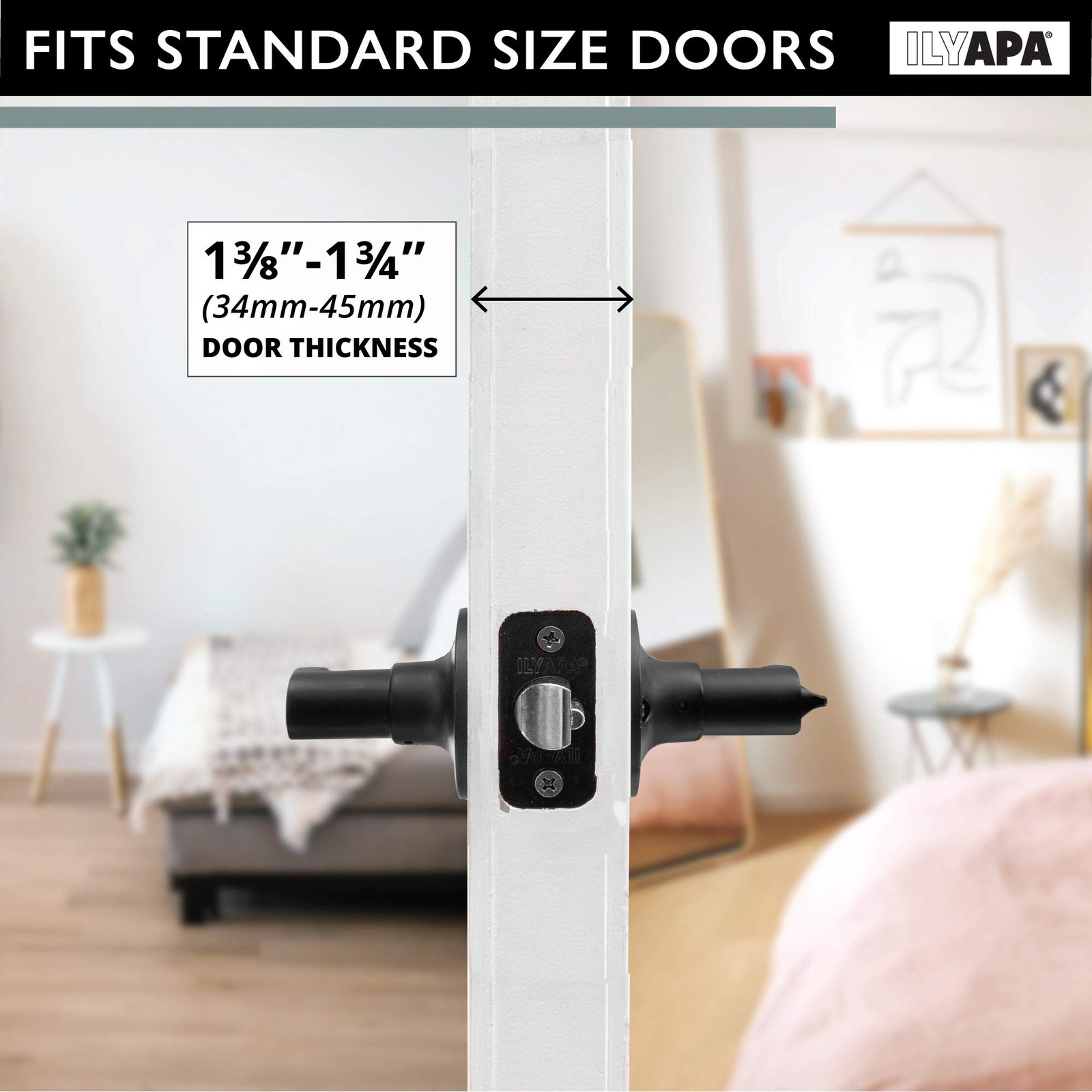 Privacy Door Lever for Bed/Bath - Wave, Matte Black Reversible Interior Keyle...