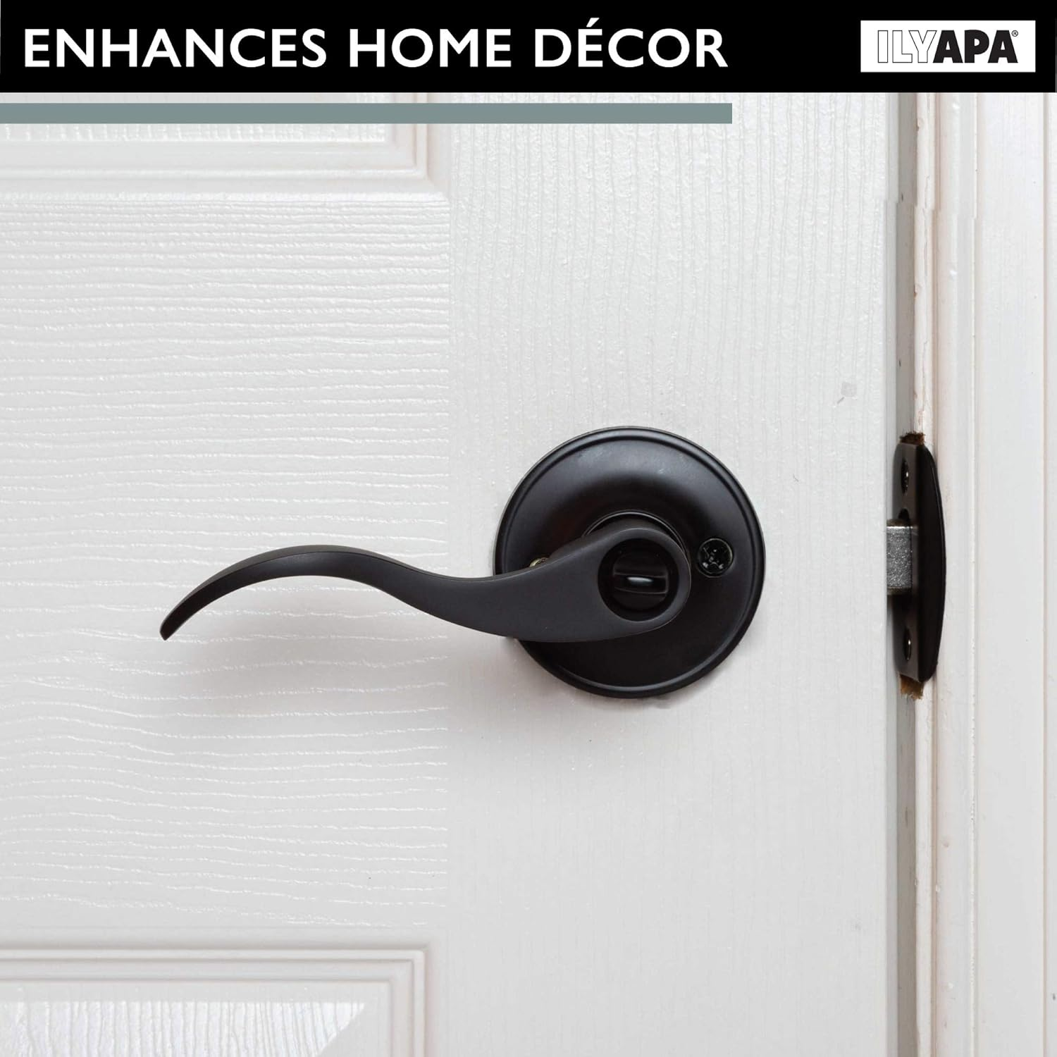 Privacy Door Lever for Bed/Bath - Wave, Matte Black Reversible Interior Keyless