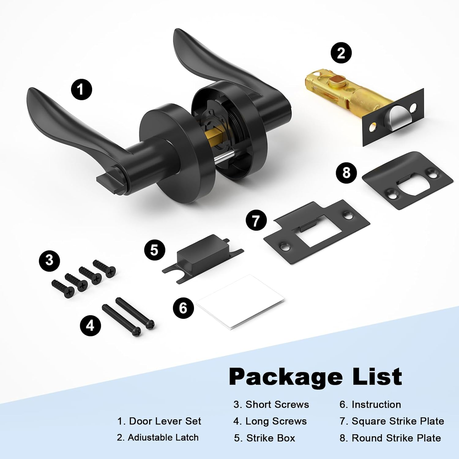 Store New Arrivals Add to Favorite View Feedback Contact Privacy Door Levers, 8 Pack Black Door Handles Interior Door Levers Keyless Lockset, Heavy Duty Reversible Wave Levers for Bedroom Bathroom Description Item model number Wave Lever Part Number ZN6205 BLBK-8 Batteries Required? No Size 8 Pack Number of Items 8 Unit Count 1.0 Count Color Black Product Dimensions 5"L x 5"W Material Zinc Country of Origin China Hand Orientation Ambidextrous Item Weight 17.46 pounds Batteries Included? No Package Type Standard Packaging Specific Uses For Product Residential Handle Type Lever Shape Round Special Features Easy to Install Special Feature Easy to Install Included Components Installation accessories and instructions PREMIUM MATERIAL: Privacy door handle is sturdy and stable which is made of heavy duty zinc alloy and metal, smooth black finish. Suitable for both conventional and modern style doors SPECIFICATION: Fits standard door thickness: 1-3/8"to 1-3/4"(35mm-45mm) and adjustable latch 2-3/8"or 2-3/4"(60mm or 70mm), the latch plate is non-detachable. Black door handle is come with square and round strike plate, allows you to replace your existing one PRIVACY FUNCTION: Keyless door lever interior with turn button(lock and unlock) and exterior with emergency release button. When you are locked inside, the outside can unlock the door with a coin or slotted screwdriver, no key is needed WIDE APPLICATION: This interior door handles is reversible that means it can be used both on left and right sided. Designed to the interior doors for bathrooms, bedrooms, offices, rooms or other places privacy required EASY INSTALLATION: Door handles lockset have installation instruction and necessaries fitting components in package, will help you to install it more better, installation in just a few minutes with screwdriver to save your time Product Description YOU NEED TO KNOW BEFORE INSTALLING KEYLESS DOOR LOCKSET Unlock Peace of Mind, Preserve Your Privacy KEYLESS DOOR LOCKSET Unlock Peace of Mind, Preserve Your Privacy KEYLESS DOOR LOCKSET Unlock Peace of Mind, Preserve Your Privacy KEYLESS DOOR LOCKSET Unlock Peace of Mind, Preserve Your Privacy 1 BEDROOM 2 BATHRROM 3 MEETING ROOM 4 GUEST ROOM ABOUT US We offer the best prices around on high quality products. Our E-store includes media such as books, movies, music and games while offering electronics, toys, sporting apparel, clothing, tools, general home, garden items and more. SHIPPING We are always working hard to ensure your package arrives as soon as possible. Please understand that some factors like weather, high postal traffic, and the performance of shipping companies are outside of our control. We offer free shipping to the lower 48 states and ship within 2 business days of payment, usually sooner. We do not accept P.O. Boxes. Please provide a physical address. For shipping outside of the continental USA, we only use eBay's Global Shipping Program.The item is shipped to KY and then sent to the rest of the world. International customers are responsible for all duties and taxes. Continue to check out in order to calculate costs for shipping the item to your country. Messages regarding eBay's Global Shipping Program MUST be directed at eBay EXCLUSIVELY. RETURNS We offer a 30-Day Return Policy on items which you are not completely satisfied with. You have the option for a full-refund or an exchange of the item. No returns are available on items shipped outside of the USA. PAYMENT We accept PayPal. CONTACT US This page content is yet to come Please ad us to your favorite seller and visit again later Thank You CUSTOMER SATISFACTION We try our very best to make sure every customer is completely satisfied. If there's a problem, message us! We're happy to help.