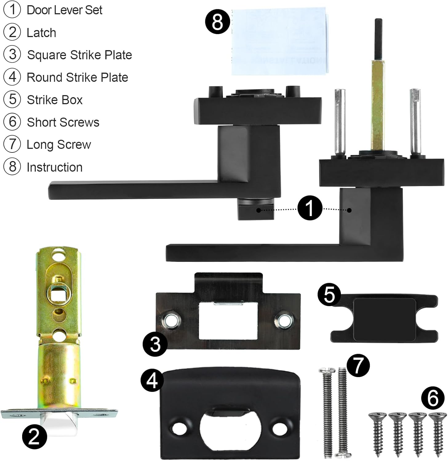 Store New Arrivals Add to Favorite View Feedback Contact Privacy Door Levers, 8 Pack Matte Black Door Handles Heavy Duty Bed and Bath Door Locks Interior Keyless Locksets, Reversible for Left Right Handed Doors Description Unit Count 1.0 Count Item dimensions L x W x H 5.65 x 5.3 x 5.3 inches Number of Items 8 Mounting Type Door Mount Item Dimensions 5.65 x 5.3 x 5.3 inches Color Matte Black Control Method Touch Material Type Zinc Alloy Connector Type Micro Usb Connector Type Used on Cable Micro Usb Switch Type Push Button Model Number ZN8101 BLBK-8 Actuator Type Rotary Switch Type Push Button Material Zinc Alloy Size Privacy-8 Pack PREMIUM MATERIAL: This modern style privacy door lever is sturdy and stable which is made of heavy duty zinc alloy and metal, matte black finish SPECIFICATION: Fits standard door thickness: 1-3/8"to 1-3/4"(35mm-45mm) and adjustable latch 2-3/8"or 2-3/4"(60mm or 70mm), the latch plate is non-detachable. Black Door handle is come with a square strike plate, allows you to replace your existing one PRIVACY FUNCTION: Keyless door knobs interior with turn button(lock and unlock) and exterior with emergency release button. When you are locked inside, the outside can unlock the door with a coin or slotted screwdriver, no key is needed WIDE APPLICATION: This interior door handles is reversible that means it can be used both on left and right sided. Designed to completed both conventional and modern style interior doors for bathrooms, bedrooms, offices, rooms or other places privacy required EASY INSTALLATION: Door handle lockset have installation instruction and necessaries fitting components in package, will help you to install it more better, installation in just a few minutes to save your time Product Description YOU NEED TO KNOW BEFORE INSTALLING 1 Install-Accessories 2 Install-Dimensions 3 Adjustable Latch Heavy Duty Zinc Alloy Square style levers with simplicity designed, compliment a wide range of contemporary and modern residential and commercial interior doors Each lock weighs almost 2lbs Strong Internal Construction Adding strength, security and durability, ensure that the lever stays level over time. Constructed of zinc alloy and stainless steel. PROVIDE A FRESH NEW LOOK WITH RAZCC DOOR HANDLES Add to Cart Add to Cart Add to Cart Add to Cart Add to Cart Add to Cart Customer Reviews 4.6 out of 5 stars 281 5.0 out of 5 stars 4 4.6 out of 5 stars 3 4.6 out of 5 stars 6 4.7 out of 5 stars 98 4.6 out of 5 stars 281 Price $104.99 $ 104 . 99 $115.99 $ 115 . 99 $104.99 $ 104 . 99 $104.99 $ 104 . 99 $99.99 $ 99 . 99 $109.99 $ 109 . 99 Finish Matte Black Oil Rubbed Bronze Black Black Matte Black Satin Nickel Function Privacy-Keyless Privacy-Keyless Privacy-Keyless Privacy-Keyless Passage Privacy-Keyless Reversible Reversible Lever - 45° Reversible Lever - 45° Reversible Lever - 45° Reversible Lever - 45° Reversible Lever - 45° Reversible Lever - 45° Applicable Occasions Bed Bath or other privacy need Bed Bath or other privacy need Bed Bath or other privacy need Bed Bath or other privacy need Interior doors no lock require Bed Bath or other privacy need Item Package Quantity 8 Pack 8 Pack 8 Pack 8 Pack 8 Pack 8 Pack Strong Construction ✔ ✔ ✔ ✔ ✔ ✔ Heavy Duty ✔ ✔ ✔ ✔ ✔ ✔ ABOUT US We offer the best prices around on high quality products. Our E-store includes media such as books, movies, music and games while offering electronics, toys, sporting apparel, clothing, tools, general home, garden items and more. SHIPPING We are always working hard to ensure your package arrives as soon as possible. Please understand that some factors like weather, high postal traffic, and the performance of shipping companies are outside of our control. We offer free shipping to the lower 48 states and ship within 2 business days of payment, usually sooner. We do not accept P.O. Boxes. Please provide a physical address. For shipping outside of the continental USA, we only use eBay's Global Shipping Program.The item is shipped to KY and then sent to the rest of the world. International customers are responsible for all duties and taxes. Continue to check out in order to calculate costs for shipping the item to your country. Messages regarding eBay's Global Shipping Program MUST be directed at eBay EXCLUSIVELY. RETURNS We offer a 30-Day Return Policy on items which you are not completely satisfied with. You have the option for a full-refund or an exchange of the item. No returns are available on items shipped outside of the USA. PAYMENT We accept PayPal. CONTACT US This page content is yet to come Please ad us to your favorite seller and visit again later Thank You CUSTOMER SATISFACTION We try our very best to make sure every customer is completely satisfied. If there's a problem, message us! We're happy to help.