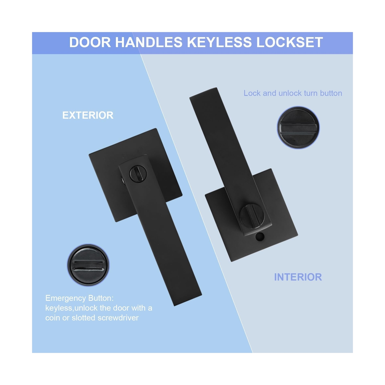 Privacy Door Levers, Matte Black Door Handles Heavy Duty Bed and Bath Door Locks Interior Keyless Locksets, Reversible for Left Right Handed Doors, 7 Pack Description Features: PREMIUM MATERIAL: This modern style privacy door lever is sturdy and stable which is made of heavy duty zinc alloy and metal, matte black finish SPECIFICATION: Fits standard door thickness: 1-3/8"to 1-3/4"(35mm-45mm) and adjustable latch 2-3/8"or 2-3/4"(60mm or 70mm), the latch plate is non-detachable. Black Door handle is come with a square strike plate, allows you to replace your existing one PRIVACY FUNCTION: Keyless door knobs interior with turn button(lock and unlock) and exterior with emergency release button. When you are locked inside, the outside can unlock the door with a coin or slotted screwdriver, no key is needed WIDE APPLICATION: This interior door handles is reversible that means it can be used both on left and right sided. Designed to completed both conventional and modern style interior doors for bathrooms, bedrooms, offices, rooms or other places privacy required EASY INSTALLATION: Door handle lockset have installation instruction and necessaries fitting components in package, will help you to install it more better, installation in just a few minutes to save your time Product Details: Material: Zinc Brand: RAZCC Color: Matte Black Product Dimensions: 4.15"L x 5.6"W Exterior Finish: Black Material: Zinc Brand: RAZCC Color: Matte Black Product Dimensions: 4.15"L x 5.6"W Exterior Finish: Black Special Feature: Easy to Install Included Components: Installation accessories and instructions Lock Type: Push Button Lock Handle Material: Zinc Hand Orientation: Ambidextrous Unit Count: 1.0 Count Number of Items: 7 Manufacturer: RAZCC Part Number: ZN8101 BLBK-7 Item Weight: 16.74 pounds Country of Origin: China Item model number: PRIVACY DOOR HANDLE Size: Privacy-7 Pack Finish: Matte Black Special Features: Easy to Install Batteries Included?: No Batteries Required?: No Date First Available: October 30, 2024 Shipping Most orders will be shipped within 1 business days once we receive your payment. Except on weekend or public holidays. A shipping notification will be emailed to you once your order has been shipped. International shipping via eBay Global Shipping Program. No shipping to AK, HI, PR, APO/FPO, US Protectorates and PO Box. Payment We Accept Payment Via PayPal and All Major Credit Cards. Return We stand behind our products. Items can be returned for exchange or full refund within 30 days from the date you receive your merchandise. Return shipping is the responsibility of buyer unless the return is a result of our mistake (i.e., your receive the wrong item). We will pay for shipping replacement back to you if an exchange of the same product is requested. Contact us If you have any questions please contact us. We respond within 1 business day or less.