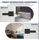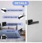PREMIUM MATERIAL: This modern style privacy door lever is sturdy and stable which is made of heavy duty zinc alloy and metal, matte black finish SPECIFICATION: Fits standard door thickness: 1-3/8"to 1-3/4"(35mm-45mm) and adjustable latch 2-3/8"or 2-3/4"(60mm or 70mm), the latch plate is non-detachable. Black Door handle is come with a square strike plate, allows you to replace your existing one PRIVACY FUNCTION: Keyless door knobs interior with turn button(lock and unlock) and exterior with emergency release button. When you are locked inside, the outside can unlock the door with a coin or slotted screwdriver, no key is needed WIDE APPLICATION: This interior door handles is reversible that means it can be used both on left and right sided. Designed to completed both conventional and modern style interior doors for bathrooms, bedrooms, offices, rooms or other places privacy required EASY INSTALLATION: Door handle lockset have installation instruction and necessaries fitting components in package, will help you to install it more better, installation in just a few minutes to save your time