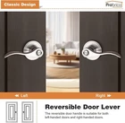 Privacy Door Levers Wave Style Handles Keyless Lock Bed Bath Door Lockset, Satin Nickel 6 Pack 6 Pack per package(for 6 doors) : privacy door levers with modern nickel finish for bathroom or bedroom door. Confirm with ANSI Grade 3, Exceeds 200,000 cycles. Privacy Function(without keys) : The latch bolt can be locked by thumb turn button on the inside lever. An emergency release tool can unlock the door from the outside Steel Adjustable Latch : It has adjustable universal latch - 2-3/8" or 2-3/4", Fits doors 1-1/4 inch to 1-3/4 inch Easy Installation : Easy to install with all accessories included. The easy installation makes for a one-person project. It fits both right and left handled doors. Dimensions : Lever Length: "(120mm) , Rosette Diameter: "(65mm). Note : The square plate of the latch is unremovable
