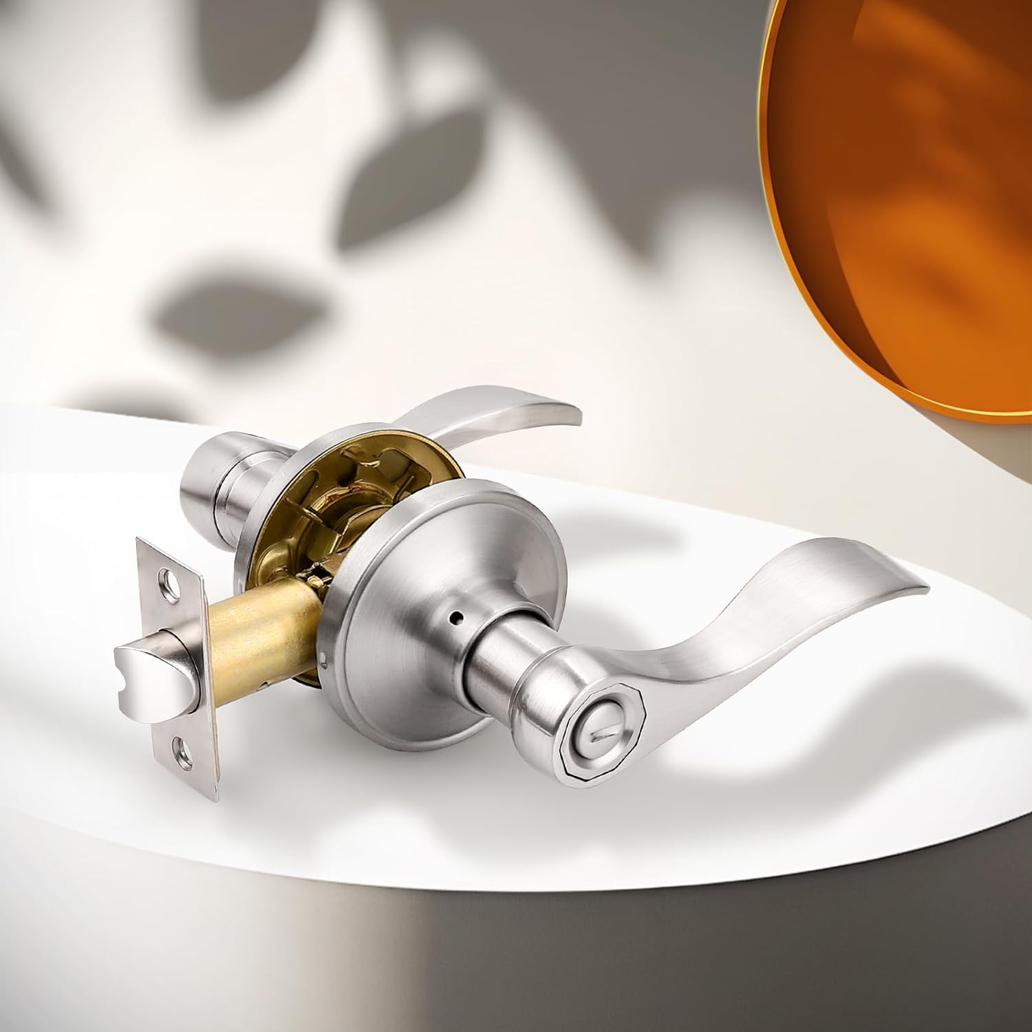 6 Pack per package(for 6 doors) : privacy door levers with modern nickel finish for bathroom or bedroom door. Confirm with ANSI Grade 3, Exceeds 200,000 cycles. Privacy Function(without keys) : The latch bolt can be locked by thumb turn button on the inside lever. An emergency release tool can unlock the door from the outside Steel Adjustable Latch : It has adjustable universal latch - 2-3/8" or 2-3/4", Fits doors 1-1/4 inch to 1-3/4 inch Easy Installation : Easy to install with all accessories included. The easy installation makes for a one-person project. It fits both right and left handled doors. Dimensions : Lever Length: 4.7"(120mm) , Rosette Diameter: 2.56"(65mm). Note : The square plate of the latch is unremovable Product Description Probrico Satin Nickel Door Lever Take Probrico, take quality life. 1 Bedroom 2 Bathroom 3 Meeting Room Modern | Exquisite | Durable Probrico is a professional household goods retailer. We are committed to providing you with high-quality products and after-sales services. This nickel privacy door lever is one of the best-selling products in our store. The exquisite design and good quality will meet your needs and surprise you! Reversible Door Handle The privacy door lever is suitable for both left-handed and right-handed users. Easy Installation With instruction, it’s easy to install the whole set in a few minutes. More Products for Your Choice Add to Cart Add to Cart Add to Cart Add to Cart Add to Cart Add to Cart Customer Reviews 4.5 out of 5 stars 6,279 4.5 out of 5 stars 6,279 4.5 out of 5 stars 6,279 4.6 out of 5 stars 2,937 4.5 out of 5 stars 762 4.7 out of 5 stars 657 Price $109.39 $ 109 . 39 $71.98 $ 71 . 98 $85.35 $ 85 . 35 $109.82 $ 109 . 82 $21.50 $ 21 . 50 $20.80 $ 20 . 80 Function Privacy Privacy Privacy Passage Keyed Entry Dummy Color Satin Nickel Polished Chrome Gold Satin Nickel Satin Nickel Satin Nickel Pack 1, 2, 3, 4, 5, 6, 8, 10 1, 2, 3, 4, 5, 6, 8, 10 1, 2, 3, 4, 5, 6, 8, 10 1, 2, 3, 4, 5, 6, 8, 10 1, 2, 3, 4, 5, 6, 8, 10 1, 2, 3, 4, 5, 6, 8, 10 Reversible ✔ ✔ ✔ ✔ ✔ ✘ Keyless ✔ ✔ ✔ ✔ ✘ ✔