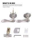 Privacy Door Locks Bedroom/Bathroom Door Levers Handles for Left and Right Opened Door in Satin Nickel Description and features Privacy function - Lock the privacy from the inside by rotating the button, and unlock it from the outside with a screwdriver, coin or similar object in case of emergency, no key, no need to worry about accidental internal lock, perfect for the privacy of bedrooms, bathrooms, other indoor rooms. Traditional Design - Classic drop lever design ensures comfort to hold and safe operation, traditional and modern style doors complement each other. Easy to install - includes all accessories (latch, impact plate, screws), can be installed in minutes using a screwdriver, with a matte black lock, give your house a new look. Removable latch plate and adjustable latch for side-to-side swing doors, 2-3/8 inch-2-3/4 inch (60-70 mm) backplane and doors, 1-3/8 inch-1-3/4 inch (35-45 mm) thick. CML fully supports our products with a full 5-year covering surface treatment and machinery, ANSI Class 3 certified to guarantee over 200,000 cycles without wear. Return Policy ⦿ All our products come with a 30-Day Return Policy. If you would like to return your item and you are within 30 days of the purchase, and it is still in its original condition, you can return the item by contacting us through eBay messaging. ⦿ If you are not 100% satisfied, please let us know the Detailed Problem,We will give you a 100% satisfactory solution ⦿ If you received an incorrect, damaged, defective, or item not as described, contact us for a partial/full refund or replacement on our cost. ⦿ Free Shipping and Free Return 30-Days Money Back Guarantee. ☎ For all returned products, buyers MUST contact us for the returning address. Shipping ⦿ We do not ship to a different address. we will ship to the address you provide on the ebay only. Please check your address before purchase. ⦿ It should take 2-4 business days for the product to reach your destination. ⦿ If the product doesn't reach your destination within the time limit, please give it an additional 1-2 business days in case of postal delays and/or possible technical issues. ⦿ We use a selection of shipping services such as UPS, FedEx, USPS etc. ⦿ We ship only to the 48 contiguous states of America. We do not ship to Hawaii, Alaska, US Protectorates, APO/FPO addresses. Local pickups are not offered. ☎ If it takes any longer than that, please do not hesitate to contact us to resolve the issues. Contact us ☎ Please contact us via eBay message. And your message will be replied within 1 business days. For any queries, please feel free to contact us, we will get back to you as quickly as possible. Customer 100% satisfaction is our first priority and goal. We are always working hard for maintain high standards of excellence and resolve your problem in best way. So your POSITIVE FEEDBACK is very important. If you have any problem of the item, please feel free to let us know before leaving your feedback. We will try our best to solve your problem. About us We are here to give you quality products, competitive pricing and amazing service in order to make sure you get the best deal online, Thank you for your business and the opportunity to serve you.