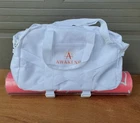 All items are NEW and branded with “Awakened”. This is a professional yoga mat, not the cheapfoam mats purchased at big box stores. The mat measures 68” long x 24” wide and the surface has a softmicrofiber texture. The duffle baghas a large zip opening and offers easy access to items while adjustable strapshold the yoga mat in place. Bag dimensions: 19” long x 8” wide x 13” tall.Strap length when fully extended: 50” Volume: 40L. Carry it by the handles oracross the body with the detachable strap. Interior pocket for your small itemsor cell phone. Also includedis a 20oz glass water bottle covered in a silicone wrap and a bamboo top.Bottle measures 9.5” tall. The journal measures 7” wide x 10” tall and comeswith a pen.