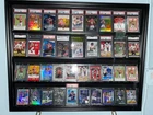 Black Finish. Cards NOT Included. Collector's choice display case for sports graded cards graded/ungraded up to 5.5" tall. . Please measure cards to make sure they are no more than 5.5" height. So, this would only fits graded Professional football, basketball, baseball, hockey trading cards in plastic cases that are no taller than 5.5". You can display 36 graded cards or 48 hard sleelves total. Dimensions: 30.5" W X 24.25" H X 2"D, baseball card display case is made of Grade A+ acrylic, with 96% transparency, 98% UV protection. It will protect the cards to fade while providing very transparent view for the best showing of the cards. The lockable anti-theft locks keep your sports cards memorabilia or collectibles from inquisitive hands. Metal brackets are already installed on the back for hanging. Wall hooks included. While this would be of great use if you are a card collector it can also be a great unique gift for someone who collects sports trading cards are an hobby.
