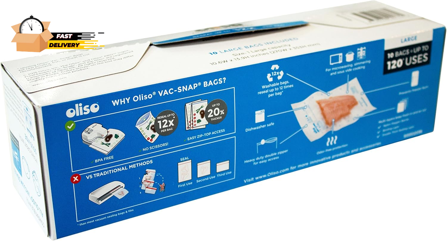Store New Arrivals Add to Favorite View Feedback Contact Pro VAC-SNAP Bags for Vacuum Sealers (Large, 1 Gallon, 10 Bags) Description Item model number 50002036 Item Weight 0.07 Pounds Power Source electric Color Clear Material Plastic Global Trade Identification Number 00850769001745 Operation Mode Manual Is Discontinued By Manufacturer No Product Dimensions 13.5 x 10 x 0.05 inches Size Large, 1 Gallon, 10 Bags AIRTIGHT SEAL - Exclusively designed for all Oliso Pro vacuum sealers with Punch-&-Seal technology, creates airtight waterproof heat seal keeping air out, and freshness in; odor free EASY TO USE - VAC-SNAP pre-made resealable zipper-top bags allow for easy access, work for liquid or dry food and keep food, herbs and spices fresh up to 5X longer in the refrigerator, freezer or pantry RESEAL BAG UP TO 10 TIMES - Once the bag has been vacuum sealed, simply open the resealable zipper-top to add or remove food, then close and reseal up to 10 times 4 LAYERS OF PROTECTION - Keep food fresh 5X longer, reduce food waste, prevent freezer burn and saves hundreds of dollars a year on groceries ECO-FRIENDLY - Uses heavy-duty, BPA-free #7 recyclable material making them the perfect durable storage bag; includes 10 Large, 1 gallon size bags Freshness in a snap! Oliso Vac-Snap bags are designed with heavy-duty multi-layer construction that, when used with the Oliso PRO smart vacuum sealer creates an airtight waterproof heat seal. Air & odors are locked out to keep your food fresh 5X longer, reduce food waste, prevent freezer burn and save you hundreds of dollars a year on groceries! Works great for microwaving, simmering and sous vide cooking. VAC-SNAP resealable zipper-top bags allow for easy access, work for liquid or dry food and keep food fresh in the refrigerator, freezer or pantry; pre-built bags mean no cutting, waste or mess. Once the bag has been vacuum sealed, simply open the resealable zipper-top to add or remove food, then close and reseal up to 10 times. Made from heavy-duty, BPA-free #7 recyclable material making them the perfect durable storage bag. Includes 10 large sized, 1 gallon bags. ABOUT US We offer the best prices around on high quality products. Our E-store includes media such as books, movies, music and games while offering electronics, toys, sporting apparel, clothing, tools, general home, garden items and more. SHIPPING We are always working hard to ensure your package arrives as soon as possible. Please understand that some factors like weather, high postal traffic, and the performance of shipping companies are outside of our control. We offer free shipping to the lower 48 states and ship within 2 business days of payment, usually sooner. We do not accept P.O. Boxes. Please provide a physical address. For shipping outside of the continental USA, we only use eBay's Global Shipping Program.The item is shipped to KY and then sent to the rest of the world. International customers are responsible for all duties and taxes. Continue to check out in order to calculate costs for shipping the item to your country. Messages regarding eBay's Global Shipping Program MUST be directed at eBay EXCLUSIVELY. RETURNS We offer a 30-Day Return Policy on items which you are not completely satisfied with. You have the option for a full-refund or an exchange of the item. No returns are available on items shipped outside of the USA. PAYMENT We accept PayPal. CONTACT US This page content is yet to come Please ad us to your favorite seller and visit again later Thank You CUSTOMER SATISFACTION We try our very best to make sure every customer is completely satisfied. If there's a problem, message us! We're happy to help. WE ACCEPT Copyright © 2021 AutoDS. | All Rights Reserved