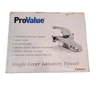 New, in sealed box -Polished Chrome Finish -Loop Handle -Bonus Lever Handle Included -Water Saving Aerator -Chrome Plated Brass Pop Up
