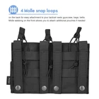 ProCase 6 Pouch Magazine Holder for Gun, Open-Top Triple Tactical Stacker Mag Pouch -Black Mag holder front pocket size: 3.14*1.18*3.74 inch, back pocket size: 5.9*1.96*8.85 inch; Made from waterproof 1000D nylon and combined with reinforced stitching for long lasting durability 6 Slotsmag pouches can hold most small-caliber 5.56 / 7.62 magazines Elastic bungee cords can be adjusted to hold any mag capacity in place securely without fear of losing a mag, considerate pull tabs on the open top for fast reloading and easy grip in a hasty situation 4 Molle snap loops on the back for easy attachment to your tactical vests, bags, belts; Molle webbing on the front allows you to attach additional pouches if needed 6 draining holes at the bottom help sand or moisture to drip out in case you get caught in foul weather, keeping your magazines away from potential damages caused accidentally Description ProCase Triple Stacker Magazine Pouch provides both portability and practicality for magazine storage. 6 open-top compartments are perfect for accommodating various size magazines, flashlights, knives or other gadgets securely. User-friendly elastic bungee cords offer you easy access to reload in hurry. MOLLE straps on the back with snap button enables you to lock it tightly to any type of molle gear. Molle type straps on the front allow you to expand carrying capacity. It is ideal for shooting, hunting, field training and etc. Shipping We offer FREE shipping on all orders! We ship within Three business days of payment, usually sooner. We use a selection of shipping services such as UPS, FedEx, USPS etc. We only ship to the lower 48 states, no APO/FPO addresses or PO Boxes allowed. Local pickups and combined shipping options are not provided at this time. Return You can return a product for up to 30 days from the date you purchased it. Any product you return must be in the same condition you received it and in the original packaging. Please keep the receipt. Payment We accept payment by any of the following methods: PayPal Please pay as soon as possible after winning an auction, as that will allow us to post your item to you sooner! Feedback Customer satisfaction is very important to us. If you have any problem with your order, please contact us and we will do our best to make you satisfied. Contact Us If you have any queries, please contact us via ebay. We usually respond within 24 hours on weekdays. Please visit our eBay store to check out other items for sale! Thank you for shopping at our store.