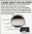 PRO-TECH HORIZONTAL SHOULDER HOLSTER DESCRIPTION: Horizontal Double Shoulder holster for Ruger SR-22 by Pro-tech holsters. This specially designed Shoulder holster isn't tapered like most Shoulder holsters - and will accommodate many different configurations of pistols. It also features a thumb break for secure retention and custom fit. The outer layer is cordura ballistic nylon. It's made of durable black nylon w/black nylon stitching and the inside has a soft padding to protect your guns finish and it's adjustable so the holster can be worn on the left or right side - for left or right-hand draw. Comes with Double Magazine Pouch. Gun Holster Features - Double Magazine Pouch. - Adjustable for right or left-hand draw. - Made of durable nylon with padding. - Pro-tech holsters brand. - Features an adjustable thumb break for secure retention and custom fit. Jesus is the way, the truth and the life! When you follow Him you’ll be blessed beyond measure! God says that He will give you abundantly more than you can even ask for or imagine. He really wants to bless you! You’re His child, He loves you so much! John 14:6 God Bless Size Chart Make Model AMT Autos "Backup" .380 ACP,22LR 2 1/2 20 20 20 20 "Backup" .45 3 3 3 3 3 Skipper 4 7 7 7 7 Hardballer .45 5 15 15 15 15 Hardballer .45 Longslide 7 35 35 35 Lightning .22 5 15 15 15 Lightning .22 6 1/2 35 35 35 Automag II .22 WMR 3 3/8 3 3 3 3 Automag II .22 WMR 4 1/2 8 8 8 8 Automag II .22 WMR 6 21 21 21 21 Astra Autos Constable, Camper, Falcon 3 1/2 - 4 7 7 7 7 A-70M, A-75 3 1/2 33 33 33 33 A-80, A-90, A-100 3.35 3 3 3 3 Revolvers All Double Action 3 12 12 12 All Double Action 4 12 12 12 All Double Action 6 14 14 14 14 6" 14 All Double Action 8 1/2 16 16 16 16 8" Auto Ordance Autos Pittbull 3 1/2 8 8 8 8 General 4 1/2 8 8 8 8 1911 A1 5 15 15 15 15 Bersa Autos 380 3 20 20 20 20 Bersa Bersa Beretta Autos Autos Autos Thunder 40,45 Thunder 40,45 20, 21,32, 950 Series 3 1/2 4.3 2 1/2 3 7 1 3 7 1 3 7 1 3 7 1 Tomcat 2 1/2 1 1 1 1 34, 70S, 70SP, 81, 82, 82B, 84, 84B, 84F, 85, 85B, 85F, 86, 87, 90, Puma, Jaguar 3 1/2 - 3 3/4 33 3 33 3 76P, 76W, 89 5 - 6 21 21 21 21 92, 92S, 92SB, 92D, 92F, 92G, 96, 92FS, Brigadier 5 8 8 8 8 92FC, 92 Centurionm 96 Centurion, 92D Centurion, 96D, Centurion 4 1/4 8 8 8 8 92SBC, 92FM 4 1/2 8 8 8 3 3 8000, 8040 Cougar, 9000 3 1/2 33 3 33 3 8 Browning Autos BDA .380 3 3/4 3 3 3 3 Micro Buck Mark/Buck Mark Plus, Challenger, Nomad 4 - 4 1/2 8 8 8 8 Hi-Power 9MM, L40 4 5/8 15 15 15 15 BDM 9MM, BPM-D, BRM-DOA 4 3/4 8 8 8 8 BDA 9MM, .38 Super, .45 ACP 4 1/2 8 8 8 Buck Mark .22, Challenger, Nomad 5 1/2 21 21 21 Colt Autos Mustang, Mustang Plus II, Mustang Pocketlite 2 3/4 20 20 20 Officers ACP .45, DBL Eagle Officers .45, 1991 A1 Compact 3 1/2 3 3 3 3 380 Government Model, Government Pocketlite 3 1/4 20 20 20 Challenger, Huntsman, Woodsman, Sport, Cadet 4 1/2 7 7 7 7 Commander, Combat Commander, Lightweight Commander, 1991 A1 Commander 4 1/4 8 8 8 8 Combat Elite, Delta Elite, Government Model, Gold Cup, Combat Target, 1991 A1 5 15 15 15 15 Huntsman, Targetsman, Woodsman, Challenger 6 21 21 21 Revolvers Agent, Cobra, Commando, Detective SPL, Lawman, DSII/38 SPF VI 2 - 3 11 11 11 Commando, Lawman, Official Police, Marshall, Metropolitan, King Cobra, Peacekeeper, Python, Three-Five-Seven, Trooper 4 12 12 12 Diamondback 4 12 12 12 Officers Model, King Cobra, Peacekeeper, Offiicial Police, Python, Three-Five-Seven, Trooper 6 4 4 4 6" Diamondback 6 14 14 14 14 6" Anaconda, New Service 6 14 14 14 14 6" Python, Trooper 8 16 16 16 16 8" Anaconda, New Service 7 1/2 - 8 16 16 16 16 8" Frontier Scout, New Frontier, Peacemaker, Single Action Army 4 3/4 12 12 12 12 12 New Frontier, Single Action Army, Peacemaker 5 1/2 23 23 23 New Frontier .22, Peacemaker, Single Action Army 7 1/2 16 16 16 16 Whitetailer 8 16 16 16 16 CZ Autos CZ83 3 1/2 3 3 3 3 CZ Autos CZ75 Compact 40,9mm,CZ40P CZ P-01 Bobcat 3 .9 7 7 7 7 CZ75,SP-01,CZ75 B,CZ75 BD 4.5 8 8 8 8 Daewoo (Firstshot INC.) Autos DP52 (Walther), PH380 3 3/4 20 20 20 20 DP51 9mm 4 3 3 3 3 DH40 4 3 3 3 3 Daisy Airguns 57 4 780, 790, 1200 4 - 6 O8, P38, 59 4 - 5 European American Army (EAA) Autos European .22, .380, .32 3.2 3 3 3 3 Witness Subcompact, FAB92 3.66 7 7 7 Witness, Witness Sprot, Witness Combo, RAB92 4.7 15 15 15 15 Revolvers Windicator 2 2 2 2 2 Windicator 4 10 10 10 Windicator, Windicator Target 6 14 14 14 14 6 14 Small Bore Bounty Hunter, Big Bore Bounty Hunter 4 3/4 - 5 14 14 14 14 6 14 Small Bore Bounty Hunter 6 14 14 14 14 6 14 Big Bore Bounty Hunter 7 16 16 16 16 8 Small Bore Bounty Hunter 9 17 17 17 17 10 Freedom Arms Revolvers 454 Casull 4 3/4 23 23 23 454 Casull 7 1/2 27 27 27 454 Casull 10 17 17 17 17 Glock Autos 19, 31, 32,33,38, 4 7 7 7 7 17, 22, 31 4 1/2 7 7 7 7 20, 21 4 1/2 8 8 8 8 23,29, 30,36 3 3/4 33 33 33 33 26, 27, 39, G28 3 1/4 3 3 3 3 34, 35 5.32 21 21 21 21 H & K Autos P7, P7M8, P7M10, P7M13,P30,45C 4 7 7 7 7 USP Tactical 5.09 8 8 8 8 USP Tactical 4.78 8 8 8 8 Harring-ton & Ri-chardson Revolvers 504, 525, 532, 622, 632, 642, 732, 733, 826, 829, 830, 832, 833, 900, 901, 922, 925, 929, 930, 970 2 1/2 - 3 11 11 11 504, 525, 532, 586, 622, 642, 686, 732, 733, 900, 901, 904, 905, 922, 925, 926, 929, 930, 980, 999 4 - 4 1/2 12 12 12 504, 986, 603, 604, 649, 650, 686, 900, 901, 903, 904, 922, 929, 930, 939, 940, 949, 950, 999 5 - 6 14 14 14 12 12 6 12 586, 649, 686, Plus Other Double Action, 586, 686 7 - 8 16 16 16 16 8 10 17 17 17 17 Hi_Point Autos 9mm Compact, .380 Compact 3 1/2 33 33 33 9mm, .40, .45 4 1/2 8 8 8 High Standard Autos Victor 4 1/2 15 15 15 Victor; OLYMPIC;SUPERMATIC TROPHY 5.5 21 21 21 HS America Autos HS 2000 4 7 7 7 7 Jennings Autos J-22, J-25 2 1/2 1 1 1 1 48, 9mm 13-Shot 3 - 4 5 5 5 Kahr Autos K9 9mm 3 1/2 3 3 3 3 KBI Autos PMK .380, SMC .380 4 7 7 7 7 PJK-9HO 4 5/8 8 8 8 8 PSP 25 2 20 20 20 20 Kel-Tec Autos P32 2 1 1 1 1 P-11 9mm, P40 3.1 20 20 20 20 Kimber Autos Custom, Royal, Stainless, Gold Match, Stainless Gold Match 5 15 15 15 Gold Combat, Gold Combat
