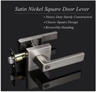 I have these and don't need them. Hopefully you do, thanks for looking. Probrico Privacy Door Handle Interior Door Lever Satin Nickel,Keyless Features, Bedroom and Bathroom Lockset handle set, Heavy Duty, 1 Pack Color: Brushed Nickel Product details Material Zinc Alloy Brand Probrico Color Brushed Nickel Style Privacy Exterior Finish Nickel Handle Type Lever Finish Type Nickel Metal Type Zinc Alloy Handle Material Zinc - Privacy Function: Probrico privacy door lever sets are locked from the interior with a thumb turn, unlock with coin hole from the outside. Privacy levers are ideal for bathrooms, bedrooms, or anywhere a locking door is desired but a keyed cylinder isn't necessary. - Product information Technical Details Material Zinc Alloy Brand Probrico Color Brushed Nickel Style Privacy Exterior Finish Nickel Handle Type Lever Finish Type Nickel Metal Type Zinc Alloy Handle Material Zinc Package Type Standard Packaging Unit Count 1 Count Manufacturer Probrico Part Number DL01SNBK-1 Item Weight 2.25 pounds Product Dimensions 1.57 x 1.18 x 0.04 inches Size 1 Pack Finish Nickel Batteries Included? No Batteries Required? No -