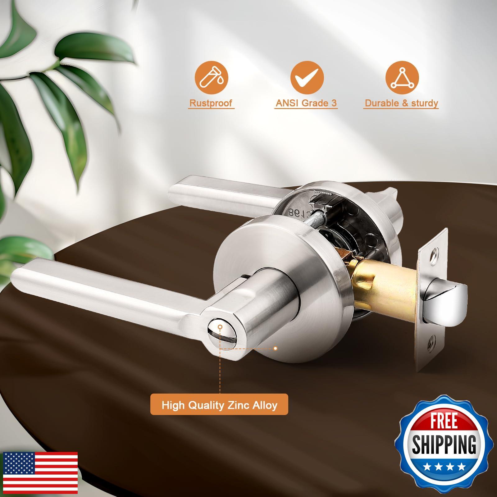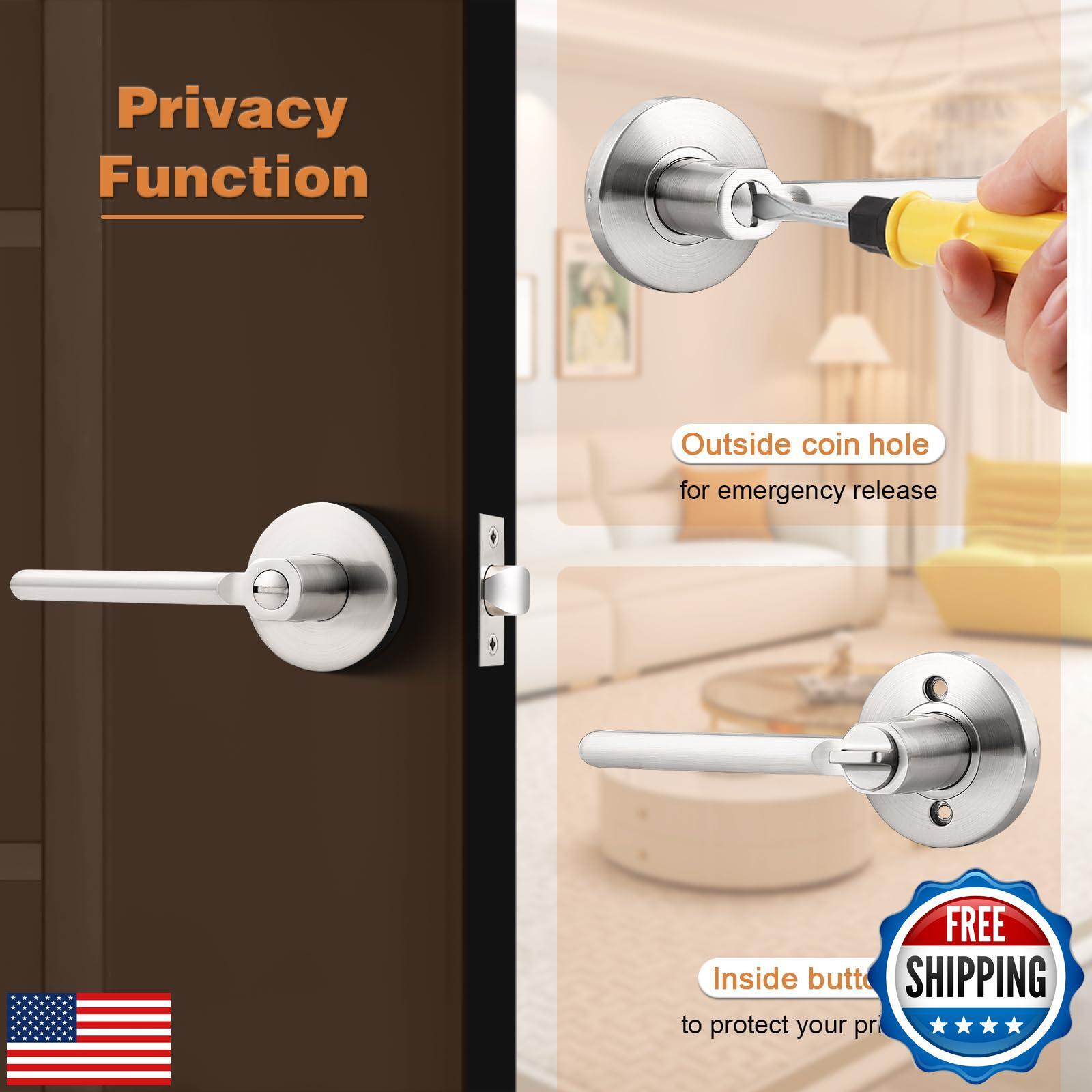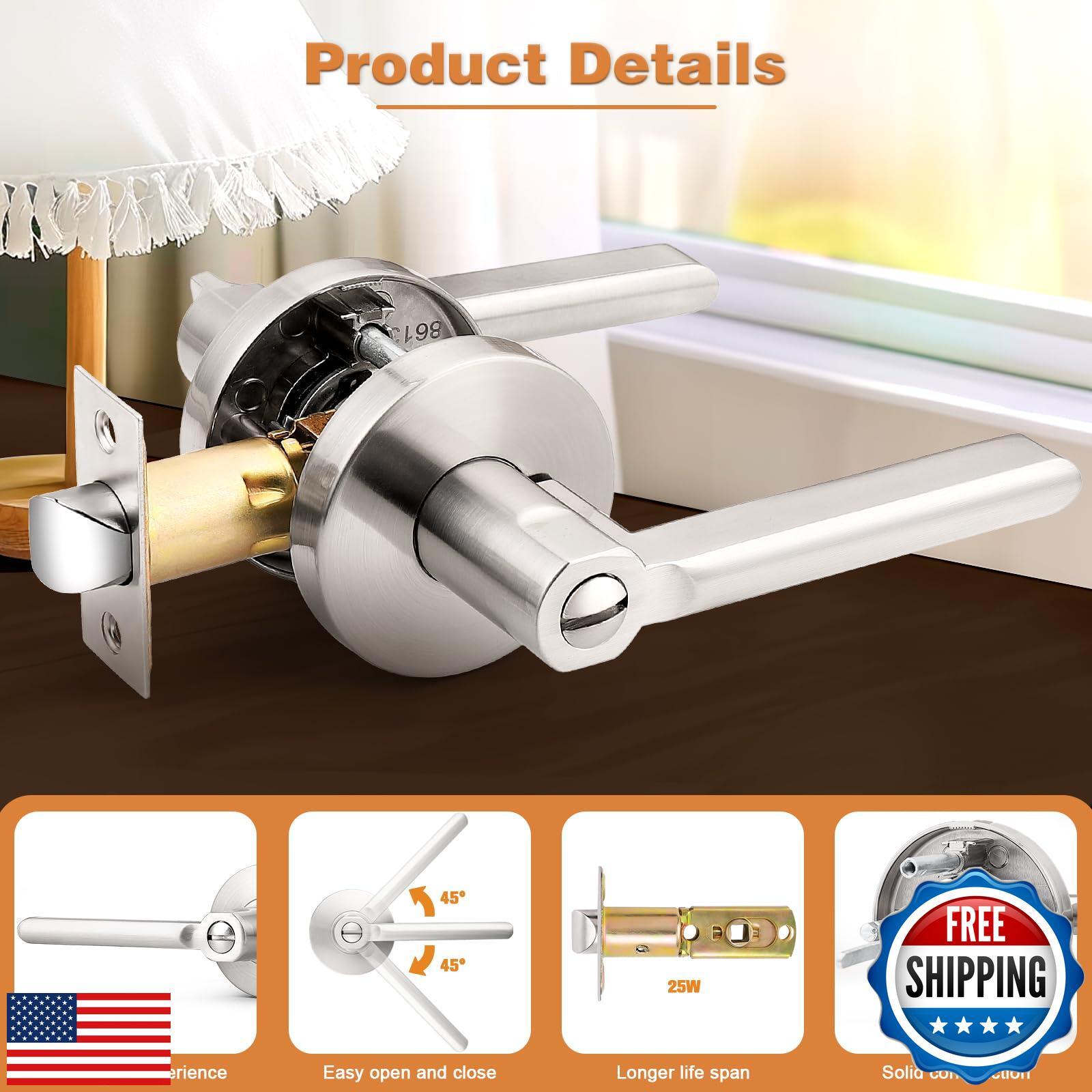 Probrico Privacy Door Handles for Bedroom and Bathroom Brushed Nickel Interior Door Handles, Keyless Privacy Door Lever Reversible, 6 Pack Features Privacy Function: The privacy function is perfect for bathroom, bedroom or any room where privacy is needed. The outside hole is for emergency release. ANSI grade-3 certified, over 250,000 cycles. High Quality: The nickel zinc alloy door handle is suitable for modern decoration. The excellent material and craftsmanship make the lever wear-resistant, corrosion-resistant, and easy to clean. Dimensions: Adjustable latch: 2-3/8" or 2-3/4" (60mm or 70mm); Fit standard door: 1-3/8" to 1-3/4" (35mm to 45mm); Diameter: 2.56" (65mm); Handle length: 4.84" (123mm) Easy installation: Support left or right hand installation. All accessories and instruction are included and well packaged. Easy to install with a Phillips screwdriver. The square latch plate is not removable. After-sale Service: Probrico is committed to providing you with high-quality service and products. Please feel free to contact us if you have any problem. Shipping Free & Fast Shipping: We offer free shipping to most of the USA with a normal delivery time of 3-7 days. However, due to the current situation, additional delivery time (up to 3 weeks) may be required for some items. Alternative Carriers: We may use alternative carriers (e.g., USPS, FedEx, UPS) to ensure your package arrives safely and on time. Due to the use of multiple carriers, we are unable to provide a tracking number automatically. Handling Time: Orders are processed and shipped within 1-2 business days of receiving cleared payment. Shipping Restrictions: Shipping to Alaska, Hawaii, Puerto Rico, Guam, and other US territories may incur shipping charges or delivery restrictions. Please contact us before ordering, or your order can be refunded/cancelled. State Restrictions: Certain items may not be shipped to California due to state regulations. Contact for Tracking Updates: If you require tracking updates or have any concerns about the delivery of your order, please feel free to contact us, and we will be happy to assist you. Return Policy 30-Day Hassle-Free Returns: If you are not completely satisfied with your purchase, you can return the item for free within 30 days of receiving it for a full refund or exchange. Easy Return Process: Contact us, and we will provide you with a prepaid return shipping label and detailed instructions. No Restocking Fee: There are no restocking fees for returns. However, the buyer is responsible for return shipping costs if the return is not due to a seller's error. Refund Processing: Refunds will be processed within 1 business day of receiving the returned item in its original condition. Payment We accept all major credit cards, PayPal, and Apple Pay for your convenience. Your payment information is secure and encrypted to ensure a safe and seamless transaction. Please complete your payment within 3 days of purchase to avoid any delays in shipping. Feedback Your feedback is extremely important to us. We strive to provide the best products and customer service possible. If you are satisfied with your purchase, please take a moment to leave us a positive review. If you have any concerns or issues with your order, please contact us before leaving negative feedback. We are committed to resolving any problems and ensuring your satisfaction. Contact Us If you have any questions or concerns, please feel free to reach out to our customer support team. You can contact us through the eBay messaging system. We are available Monday to Friday, 9:00 am to 5:00 pm EST, and we will do our best to respond to your inquiry within 24 hours. Thank you for supporting our small family business!