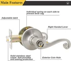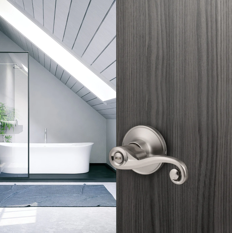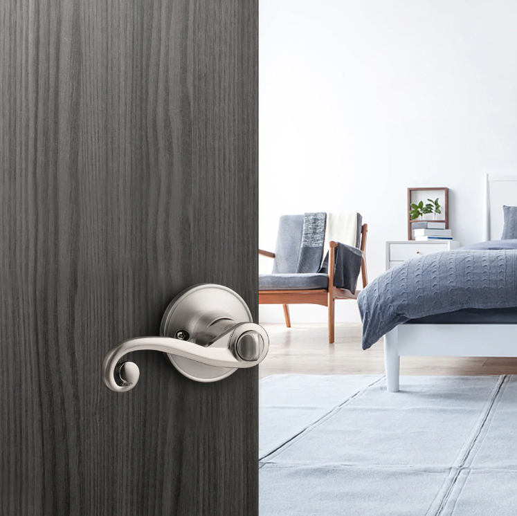 Probrico Interior Privacy Door Knob Lever, Keyless Lock Handle in Satin Nickel Elegant scroll wave style door handles in satin nickel finish; ANSI Grade 3, Exceeds 200,000 cycles Adjustable Backset - 2-3/8 inch or 2-3/4 inch (60mm or 70mm); Fits doors thickness:1-3/8 inch to 1-3/4 inch (35mm to 45mm); Right handing; fits right handed doors; All metal chassis for strength and durability, strengthened springs ensure that the lever stays level over time Please notice the square plate of the latch is not removable. If you need removable latch, please contact us; * Privacy: with lock function but keyless, you could locked inside, but can't open outside as there is no key. Usually for Bedroom/Bathroom door. (could open with coin in emergency) * Passage : can't be locked, but has the latch,so just turn to open. Usually for Hall or Closet door. Privacy Function: Privacy door lever sets are locked from the interior using a thumb turn lock on the interior handle with a small coin hole to unlock the handle from the outside. Privacy levers are ideal for bathrooms, bedrooms, or anywhere a locking door is desired but a keyed cylinder isn't necessary. Fit Different Decoration Style Features: Easy Intallation All needed accessories included Easy installation makes for a one-person project Right Handed Handle Can be installed on right handed doors Firm Internal Structure All metal chassis for strength and durability Strengthened springs ensure that the lever stays level over time Adjustable Latch 60mm(2-3/8") or 70mm (2-3/4") latch; Fit all doors of 35 to 45 mm(1-3/8" to 1-3/4")thickness. Square corner, non-removable plate