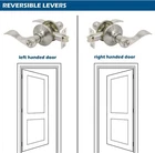 Probrico Interior Privacy Door Lever, Keyless Lock Handle in Stainless Steel Satin Nickel Stainless Steel, Contemporary Wave Design, Privacy Drop Lever in Satin Nickel. Reversible levers for right and left handed door. Fit for standard doors. Made of high-qualified stainless steel, durable, sturdy, anti rust/corrosion. Conformed with ANSI Grade 3, Exceeds 200,000 cycles. Ideal for interior doors where a privacy locking function required, such as bedroom & bathroom. Locked with turn button inside for privacy, emergency release outside with a flat screwdriver/tool or a coin. Universal Latch 2-3/8" or 2-3/4" (60mm or 70mm), Fits the door 1-3/8 inch to 1-3/4 inch (35~45mm) thick. Lever Length 4.7"(120mm), Round Rosette diameter 2.56"(65mm). Easy to install in minutes with a screwdriver. Easy to replace the old door lock. Backset latch, Strike plate, Screws, instruction included. Function Privacy Door Lever. No keys. The latch bolt can be locked by thumb turn button on the inside handle. The outside knobs have a slot that can be turned with a coin or screwdriver to unlock the door. It can be used for bedroom and bathroom doors. This wave door handle is designed to complement modern contemporary style interior and exterior doors for commercial and residential application. About Door Handles Easy Installation All you need is a door and a screwdriver! No need for professional door fitters,it is perfect for DIY. Reversible Lever The "Reversible Lever" function allows you to install the leverset on either a left hand, or a right hand configured door. It is easy to disassemble and install, can be operated smoothly without professional knowledge. Sturdy Construction The material of round spring is 65 mn, the manganese content reaches 0.9%, the wear resistance is strong and relatively stable, and it can pass the three-level standard 250,000 wear resistance tests. Brushed Nickel Finish Zamak 3, high density, strong tensile strength The material is more in line with the requirements of electroplating, so the quality of electroplating is more stable, and it can stably pass the surface quality salt spray test standard 72H. Adjustabel Latch 250,000 times of locking the inner parts, the tongue material is thick and firm, The thickness of the tongue plate material is 2.0mm, which can effectively enhance the strength of the door and prolong the service life. Comfortable Grip The material is thick, and the torque strength of the handle is enhanced. It can pass the three-level standard locking torque test of 25Nm. It feels comfortable and does not scratch the hand. Package Type: Privacy door lever Backset: Adjustable to 2-3/8" or 2-3/4" Door Thickness: 1-3/8" or 1-3/4" Lever Length: 4.72"(120mm) Rosette Diameter: 2.56"(65mm) Handing: Left, Right, Reversible What's in the Box They are packaged by the individual package. Each Package Include: Levers for both sides of the door Latch mechanism Strike plates Mounting screws Instruction Manual Features Adjusts to fit all standard door preparations Easy installation- One-person project Can be used for left and right doors
