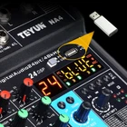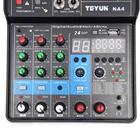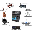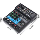 Professional 2/4 Channel USB Studio Audio Mixer Board BT Sound Mixing Console Professional 2/4 Channel USB Studio Audio Mixer Board BT Sound Mixing Console Description Are you still worried about your mixer is not effective and not fully functional? Well, now you've found a good helper! Our 2-way mixer, not only supports a variety of devices, condenser microphones, etc., and it is simple and easy to operate so that you transform into an excellent mixer, come and try it! Key Features Tuning Partner: It is equipped with high-precision 16-BIT/48KHZ audio resolution to ensure professional sound quality. And it can also be connected with computers, tablets, etc. to provide you with mobile karaoke or music production functions! 2-channel Mixer: The 2-channel audio interface controller DJ mixer is the perfect way to mix audio from microphones devices. And it has individual volume control for each channel, providing you with more accurate tuning conditions. Monitor Function: It can monitor your music in real-time, providing a stepping stone to becoming a professional mixer! Various Jacks: It has XLR+6.35mm combo jacks for mic/line/guitar inputs, separate 3.5mm stereo input jacks, and a 3.5mm headphone jack, allowing it to make creative mixes perfect for DJ parties/music recording. Use with Confidence: It is stably compatible with mainstream audio software and can achieve fast connection, low power consumption, and stable output. Diverse Connections: It can be connected with a variety of audio, computers, headphones, musical instruments, etc., so you feel like you are in a professional recording studio. 48V Phantom Power: It uses 48V phantom power to be able to use professional recording condenser microphones to create a professional-grade tuning experience for you. Durable Material: It is made of high-quality ABS, hard and rustproof, and waterproof, so you can use it for a long time. Easy to Operate: Its simple and easy-to-use control interface allows you to easily get started and become a professional mixer! High Portability: Its light weight and delicate body allow you to carry it around with you, allowing you to enjoy the splendor of music creation. Customer Service: We aim to provide quality products and services. If you have any problems, please feel free to contact us. We will reply and solve the problem for you as soon as possible. Details USB Slot: The USB slot lets it connect to portable audio devices like USB drives or MP3s, so you can tune in anywhere, anytime! Damping Knob: Its tuning knobs with a damping design, feel comfortable, free tuning! Application This 2-channel mixer supports the connection of devices, condenser microphones, etc. It is suitable for home KTV, campus presentations, conferences, stage performances, live performances, and network anchoring etc. Specification Color: Black Number of Channels: 2 Material: ABS Interface: USB Input Channel: 2-channel Mono (mic/line), Can Be Switched to 1-channel Stereo Output Channel: 1 Channel Stereo Phantom Power Supply Voltage: +48V High-pass Filter: 12dB Octave Slope to Attenuate the Frequency of 80Hz or Less USB Audio: Sampling Rate of 48KHZ, Bit Width 16bit Microphone/Guitar: XLR+6.35mm, 3.5mm Stereo in Power Supply Power Requirements: ≥ 5w Plug Voltage: US Plug 110V Product Size: 10*14*4.4cm/ 3.94*5.51*1.73in Package Size: 15.3*12.6*5.2cm/ 6.02*4.96*2.05in Net Weight: 0.22kg/ 0.485lbs Gross Weight: 0.3kg/ 0.661lbs Package Included 1* 2 Channel Mixer 1* Data Cable Notes 1. Please note that when connecting an electric guitar or electric bass, turn on the switch after connecting the instrument and turn off the switch before disconnecting. 2. Please turn all audio to the minimum before connecting or disconnecting external devices. 3. When using a condenser microphone, turn the switch on when connected and off when disconnected. 4. Please allow the slight color difference caused by the shooting light and 1-3 cm error due to manual measurement, and make sure you do not mind before ordering. Pro 4 Channels Mini Studio Audio Mixer Live Sound Mixing Console w/ USB Description: Professional Stage-Level Mixer, Analog Mixer Combined With Digital Sound Card, With 4-Channel Input, 48V, USB Playback, Bluetooth, 24DSP, Live Broadcast Port. Multifunctional and Convenient Mixer Combined with Digital Sound Card, Brand New Tuning Sound Effects. Ultra-Low Noise Quality is More Pure, High-Fidelity Sound Quality, Clear and Bright Vocals. Unique Features of NA4 Mixer: Built-In High-Speed Arm Chip, with Unique Processing Technologies such as Low Noise, Voice Change, Pitch Change, Reverberation, Delay, Electronic Sound Effects, etc. Personalized Function kittings, Convenient Console Design, Give You a Different Tuning Experience, Can be Used for Stage Performances, Bands, Conference Rooms, Recording Studios, Bars, Live Broadcasts, etc. Specification: Size: 170x 195 x50mm /0.55x 0.63x 0.16 in (Length x High x Deep) Net Weight: 0.6kg Frequency Response: 0.5db/-1.0db(20Hz~ 20khz), Reference Rated Output Level @1khz, Gain Knob: MID Input:MIC*2、2REC、PC、2LINE、USB、BT、3.5MINI 0utput: STEREO OUT:2, 3.5MINI MAIN PH OUT:, MINI LOOP BACK OUTPUT; 2.REC Bus:STEREO:1 Input Channel Functions:HPF ( Mono ) 80 Hz, 12 dB/Octave ( CH3, 4 ) EQ High Gain: +15db/-15db, Frequency Response: 10khz Ramp Frequency EQ Low Gain: +15db/-15db, Frequency Response: 100Hz Ramp Frequency PEAK LED:LED Tums On when The Signal After EQ Reaches 3db Below Distortion Level Indicate The MAIN STETREO Level Knob, The Green Light will be On When The Signal After MAIN LEVE Reaches 0db, The Red Light Will Be Clipped When The Signal Reaches 0db Below The Distortion, and The LED will Turn On and Light Up. Input and Output Level: MIC(-60db)LINE OUTPUT(-40db) Package Contents: 1 x Mixer 1 x Data Cable 1 x Power Plug 1 x English User Manual Payment Delivery details Terms of sales About us Contact us Payment We accept ebay payment 。 Fees such as import duties, taxes are not included in the 