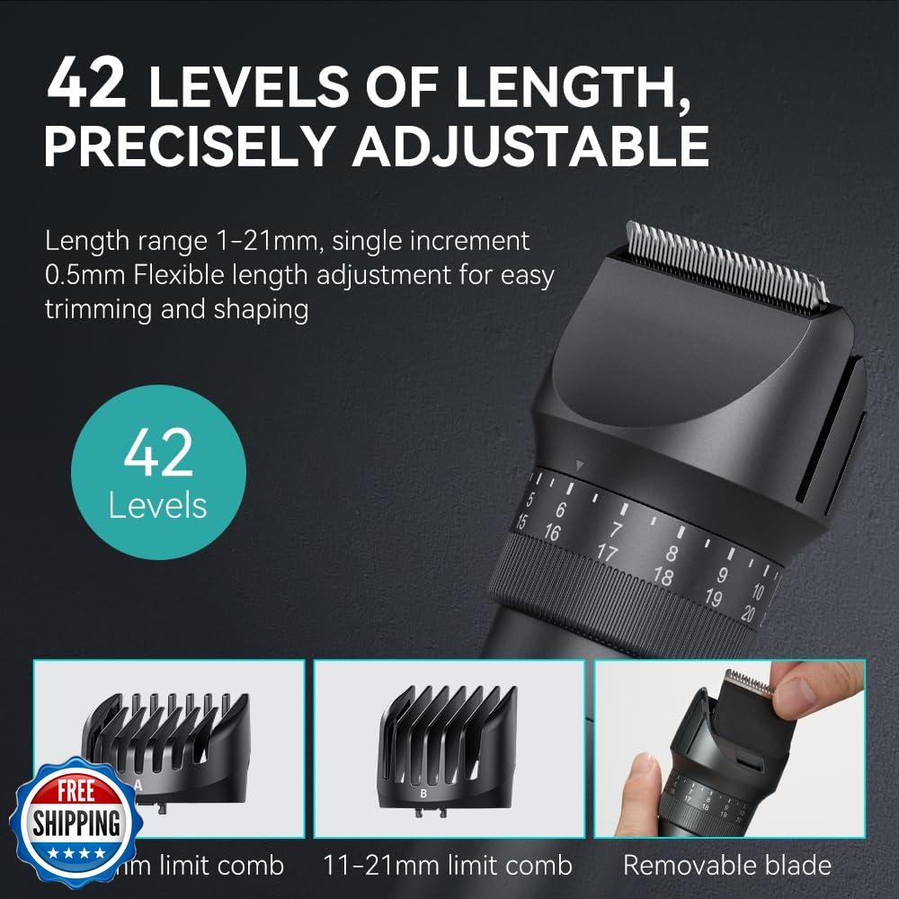 This beard trimmer is a game-changer! The 42 adjustable settings make it super versatile for any length, and the powerful motor glides through hair effortlessly. I love that it’s waterproof and includes a nose trimmer—super convenient for full grooming. The LED display is a nice touch, and it feels premium in hand. Perfect gift for any guy who likes to stay sharp!