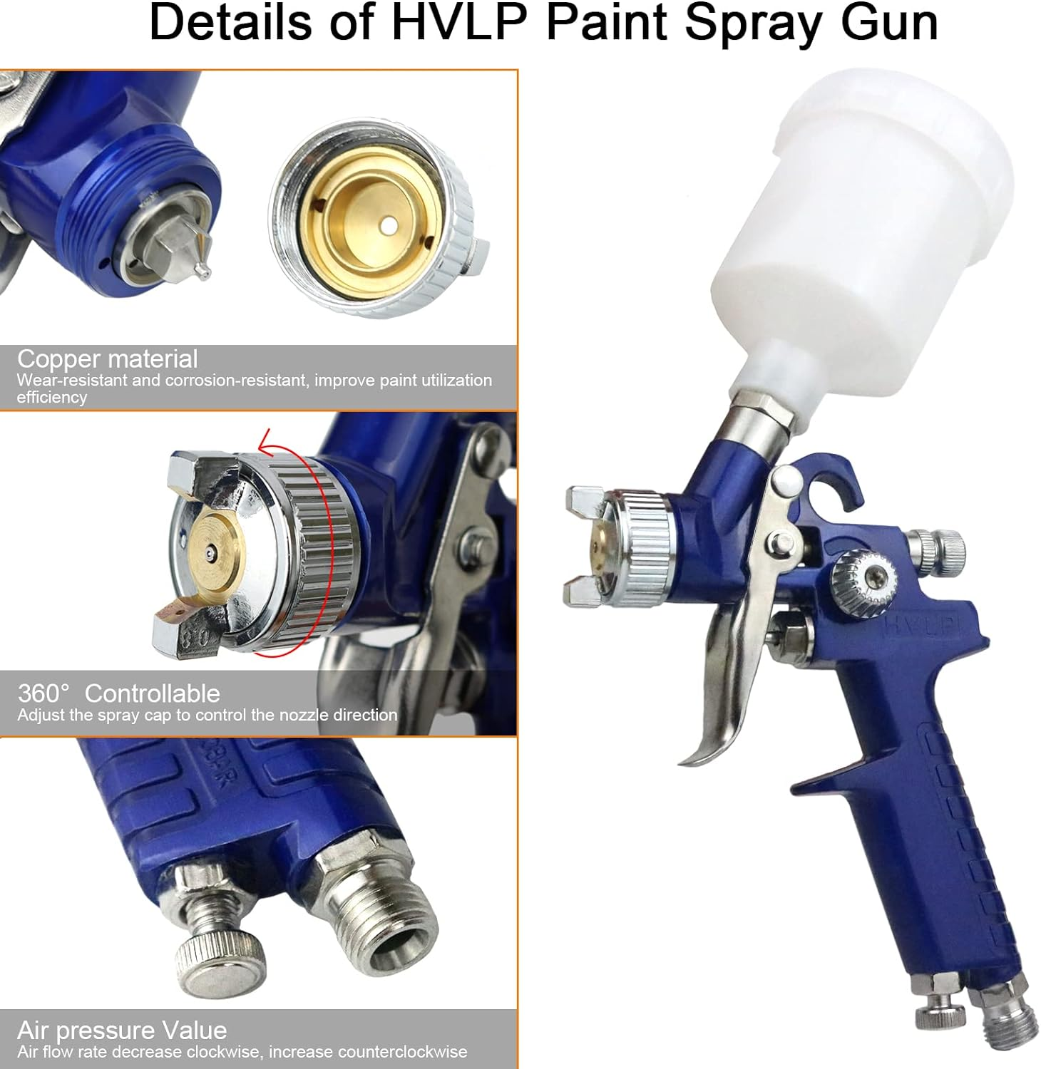 Application of HVLP Paint Spray Gun: This is a great car paint spray gun with 600cc cup for car primer,furniture surface painting,wall painting, art craft, automotive paint, cloth spray,base coatings. 3 Nozzle and 3 Needle: In order to achieve the effect of spraying, we will give three additional replaceable 1.4mm 1.7mm 2.0mm nozzle needle caps in this hvlp spray gun set, which can fully meet your needs.Please test and adjust the spray gun to the desired state with water before use.The pigment you are using needs to be diluted and operated according to the manufacturer's requirements to achieve a good spraying effect Practical Spray Gun: Use HVLP spray gun kit to reduce spraying. The gravity feed design helps to reduce the waste of residual material in the color cup, thereby helping you save costs and materials. What a practical spray gun it is! Durable and reliable: Materials of the needle and nozzle of the HVP spray gun are made of high-quality stainless steel, which is sturdy and durable, can be used for a long time, wear-resistant and scratch-resistant. Easy to Use and Clean: The nozzles of the hvlp spray gun is made of high-quality stainless steel, which is easy to clean the surface of the spray gun. In addition, the spray gun is lightweight and easy to operate, suitable for beginners and professionals. Product Description HVLP Spray Gun with 3 Nozzles 1.4mm 1.7mm 2.0mm, ideal for various surface spraying, suitable for car prime,automobile spraying, furniture spraying,cloth spraying,wall painting,base coatings and painting spraying.Save time and effort with a large spray pattern and enjoy a smooth spraying experience! Package Include 1 × HVLP Spray Gun 3 × Nozzle(1.4mm 1.7mm 2.0mm) 3 × Needle 3 × Cap 1 × 600cc color cup 1 × Wrench 1 × Brush 1 × Instruction manual Multi-function Hvlp Spray Paint Gun Good Helper for Paint Spraying This is an excellent car paint spray gun, equipped with a 600cc cup, suitable for car primer, furniture surface painting, wall painting, art craft, car paint, cloth spraying and base coatings. HVLP technology helps to reduce the waste of residual material in the color cup, thereby helping you save costs and materials..Air sprayer gun is lightweight and easy to operate, suitable for beginners and professionals. Cleaning brush and wrench for easy clean up. Air cap prevents paint from splashing. Mesh filter can filter dirt particles in paint 600cc PVC color cup is transparent to better check the paint level and save time. Replacable 1.4mm 1.7mm 2.0mm Nozzle Needle Cap We provide three types of nozzles with a diameter of 1.4mm / 1.7mm / 2.0mm to better meet your needs!The direction of 360° can be adjusted. 600cc Color Cup 600ml PVC plastic color cup is more durable and resistant to falling than ordinary pots, high spraying efficiency and it is more convenient to clean. 3 Control Knobs Fluid control adjusts the amount of spray paint, pattern control adjusts the fan pattern size, and the air conditioning valve provides the ability to adjust the air flow rate. It is designed to provide uniform spraying and particle size for all types of surface coatings. Specification Work Pressure:0.2-0.4(Mpa)/29-58PSI Air consumption: 200L/min/7CFM Spraying Distance:250mm Nozzles Size: 1.4mm,1.7mm, 2.0mm Air Inlet: 1/4 bsp Spray Width :250mm Capacity of Cup(ml): 600ml Nozzle Material: Stainless steel Color Cup Material: Plastic Strong Point Easy to operate 600cc Color Cup Lightweight and compact Gravity feed design to save cost Replacable 1.4mm 1.7mm 2.0mm Nozzle Needle Cap Wide Application Air Spray Gun for Art Craft HVLP Sprayer Gun for Wall Painting Spray Paint Gun for Car Painting
