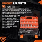 53 Pieces Socket Wrench Set Drive Socket Set with 1/4 Inch Ratcheting Wrench Plastic Toolbox Storage Case for Automotive Repair And Home Use Product Description About this item 53PCS COMPREHENSIVE TOOL SET: 1/4-Inch Drive Socket Ratchet Wrench Set can fully meet your needs in automotive maintenance work. The socket ratchet wrench set is designed professionally and economically to enable you to save to worry, money, and effort. DURABLE AND RELIABLE: The Tool Set is forged from premium chrome-vanadium steel, multiple quenching and hardening treatment, stronger torque, not easy to break, the surface is mirror-polished, longer rust-proof service life. All the tools will continue to be used for several years without replacement. WIDE APPLICATION: This socket wrench set is a beautiful unique product for men on various occasions like Father's Day, Birthday or anniversary. Perfect for home improvement, carpentry tools, construction, auto repair, woodwork, and other DIY projects. EASY ORGANIZATION: The inclusion of a plastic toolbox storage case adds to the convenience, providing a neat and organized way to keep the tools in order. With a carrying handle, making it easy to take with you wherever you go. PACKING INCLUDED: Flower pattern:T10-15-20-25-30-40; One character: 4-5.5-7; Hex: H3-4-5-6-7-8; Cross: PH1-2-3; Beige: PZ1-2-3; 1/4 Long Sleeve 6-7-8-10-11-12-13; 1/4 short sleeve 4-4.5-5-5.5-6; Socket Ratchet 1/4; Dash 7-8-9-10-11-12-13-14mm; 1/4 Spinner Handle Slide Bar; 1/4 Splicer Bar 50100 Flex 150mm; Universal Joint (1/4 Connector); Electric Drill Coupler; Allen wrench 1.5-2-2.5mm; 1 Pcs Tool box. Payment Delivery details Terms of salas About us Contact us Payment We accept major credit card payments via Paypal. Payment must be received within 7 days of auction closing date. If you do not contact us or respond to our email within 7 days of auction closing date, we do not guarantee the item availability. We reserve the right to cancel any unwanted bids. Delivery details Flat rate shipping charge will be applied to the 48 continental USA States. Extra shipping fee will be charged to ship item(s) to HI, AK, PR, GU, VI, APO, FPO . Item(s) will be shipped via UPS Ground, UPS or USPS within 3 Business days after payment is received. A Tracking Number will be updated as soon as item(s) is shipped. Item(s) will be shipped to your Paypal confirmed address. International buyers please note, we are not responsible for any custom duties, taxes and brokerage fees. For some oversize packages, we may not be able to ship via USPS. Terms of salas All of our items are professionally made and guaranteed to fit. A brief installation manual and hardware included. A professional installation is always recommended. Please send a message over eBay if you have any questions. We accept returns within 60 days after you received the item(s). All returned items must be new and in original package. The buyer will pay return shipping fees. No refund will be made for damaged parts. Shipping and handling fees and insurance fee are not refundable. About us We are specialize in research,development and production of high-quality aftermarket car and truck accessories.We are especially professional on roof cargo management,Our mission is to help carry your load by providing the roof racks that makes it easy to get what you need to your destination. Contact us Your satisfaction is our top priority. We stand behind all products that we sell. If you have a problem with any of our listings, please allow us to work it out. Our business times are Monday-Friday 9:00- 5:00 Pacific Time. Office closes on weekends and holidays. We are striving to earn a 5- star rating with every purchase. Please take a moment to leave us a positive feedback when you receive your order. If you are not satisfied, please let us know before you leaving feedback. Please always include your purchase eBay item number in the mail whenever you have any questions. Copyright © 2023 Dianxiaomi