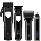 Professional Hair Clippers and Trimmer Set for Men, T-Shaper Trimmer & Foil Shaver, Nose & Ear Hair Trimmer, Cordless Clippers and Grooming Set, Hair Cutting Kit with LED Display Black POWERFUL MOTOR: hair clippers and trimmers set are powerful and quiet at up to 7500 rpm. Professional Clipper 6500 rpm, T-Shaper Trimmer 7000 rpm, Foil Shaver 6500 rpm & 7000 rpm, nose hair trimmer 6500 rpm. It not only speeds up the haircutting process but also promises stability and consistency during trimming. LARGE CAPACITY BATTERY: Men’s hair clippers have a built-in lithium-ion rechargeable battery, which allows you to utilize the trimmer all day and quickly recharge. Professional Clipper can operate wirelessly for up to 160 minutes after 3 hours of charging. T-Shaper Trimmer can operate wirelessly for up to 150 minutes after 2 hours of charging. Foil Shaver can operate wirelessly for up to 100 minutes after 1.5 hours of charging. Nose hair trimmer Convenient can operate wirelessly for up to 80 minutes after 1.3 hours of charging. USB charging is available anytime, anywhere. DOUBLE FLOATING RAZOR: The design of two independent floating blade nets increases the contact area, and ultra-thin hypoallergenic titanium foil, blade mesh hugs the contours of your face. 6500/7500RPM two speed adjustment electric foil shaver captures short thicker whiskers, which easily trims the face, neck, jaw without pulling on your beard. The shaver lock mode can be turned on or off by long pressing the switch for 3 seconds. LED DISPLAY: The ultra-clear LED can clearly show you the remaining charge, and battery status and remind you to drip blade oil in time, allowing users to easily monitor the clippers' statuses and manage for a smooth, efficient trimming experience. 4 IN 1 MULTIFUNCTIONAL: The cordless clipper is fast and efficient, with an adjustable blade that easily cuts all hair types and lengths. The T-blade trimmer is perfect for precise trimming, grooming, sideburns, neck, beard lines, and men's shaving. The Shaver works well on dense, short, thick hair and the ultra-thin blade mesh gives a close shave.The nose hair trimmer has 360° rotary dual-blade system so you experience a clean and close cut.