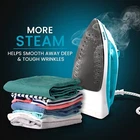 STEAM IRON - It’s a steam iron catering to all the ironing needs. The iron is having a water tank with a capacity of 200 ml, along with a 360-degree swivel cord and a nonstick soleplate for easy and smooth pressing. LIGHTWEIGHT & DURABLE - Steam iron can be easily used vertically to steam clothes on hanger or to take out wrinkles from curtains and drapes. NON-STICK SOLEPLATE - The soleplate is designed to glide smoothly on all fabrics effortlessly. ADDITIONAL FEATURES - Additional features include an adjustable thermostat control, overheat safety protection, variable steam control NOT AN USED ITEM - We test each of our steam iron by water to ensure the quality and safety of the product. Please do not worry if you find water residue inside. Product Description Temperature Control Function The steam iron lets you regulate the heating temperature by turning this knob as per your preference. Either position the knob towards minimum, maximum or the middle, depending on the type of fabric. The temperature controlling function ensures better and clean results without damaging your favorite clothes. 360 Degree Swivel Cord It is a convenient feature, provides great flexibility while handling the iron so that you can have a comfortable ironing experience from different angles. Cord Management with a Handy Plug The 2-meter power cord is simple to wrap with a plug at the end. Neatly fold the cord and store the compact steam iron in any storage space of your choice. Whenever you need to use the iron, unfold the cord, plug it in and then switch it on. Steam and Dry Ironing Steam ironing is necessary at times to remove deep and stubborn creases. Use the shot of steam feature when needed by pressing the button for a burst of steam and then press it over the wrinkled area. The vertical shot of steam feature gives adaptability in sprucing up hanging articles of clothing, upholstery, and drapery while saving an ample amount of time required for setting up the ironing board. The variable steam control allows you to set the steam output on the required level for an effective iron. You can always opt for dry ironing by making the selection depending upon the fabric type.