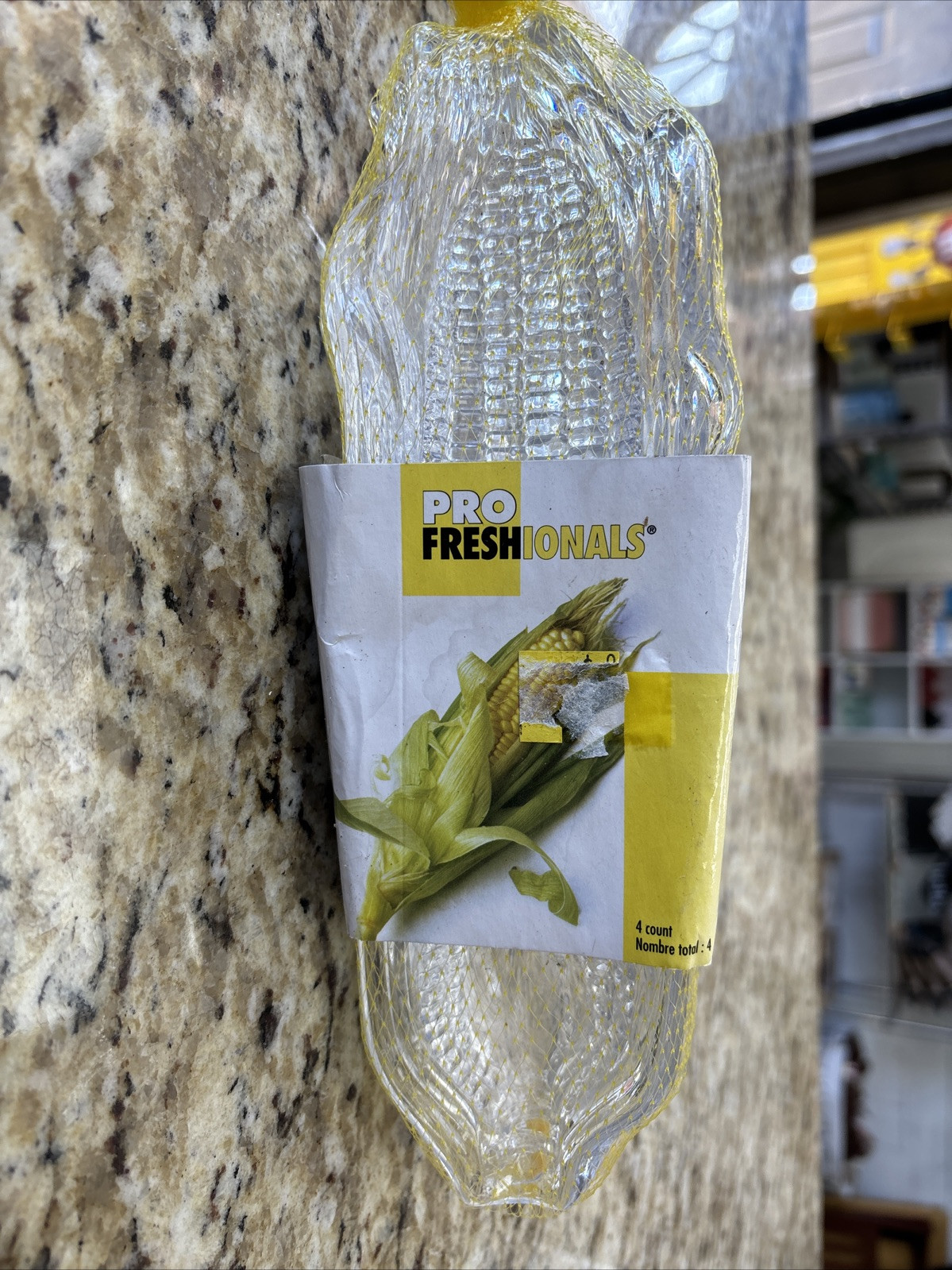This is a set of 4 clear plastic corn dishes by Profreshionals. Each tray measures 10.25 inches in length, 1.5 inches in height, and 2.75 inches in width. The dishes feature handles and are sturdy, making them easy to fill and serve corn on the cob. They are refrigerator, microwave, and dishwasher safe, making them convenient for use.