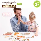 A handy box inhabits many forest animals: from small mice to bears. 9 jigsaw puzzles have a different number of pieces: 2, 3, 4, 5 and 6. In their separation will help different background colors on the reverse. Children can gradually perfect the art of putting together increasingly difficult jigsaws. Beautiful illustrations, large elements and the form of the product make the set perfect as the first multi-element puzzle for children. Play and Grow with Progressive Puzzles – sorting and assembling progressive puzzles is a great way to practice association skills, help develop hand-eye coordination and improve manual dexterity Progressive Puzzles Build Self-Esteem - the difficulty level of puzzles progress so can challenge and develop their skills, building self-esteem as they complete each dinosaur puzzle Worry-Free Toys and Games Designed for your and Home - tested to the strictest safety standards to be 100% -safe Puzzles Made in Poland with Top Quality Materials and Engaging Design - jumbo puzzle pieces look amazing with bright colors and are made of high-quality, thick cardboard perfect for little hands Even the Box is Awesome - the sturdy box with carry handle makes this game portable for fun on-the-go or on travel, it's easy to put away and , and it makes a great gift