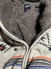 The Projek Raw Aztec Tribal Men's Jacket in size XL is a heavy, hooded jacket perfect for casual occasions during the colder seasons. Made from polyester with a polyester lining, this beige jacket features a full zip design and is machine washable for easy care. With its Aztec theme and overcoat style, this jacket is personalized to the individual and suitable for activities such as walking. Perfect for winter, fall, and spring, this jacket provides both style and warmth for the modern man.