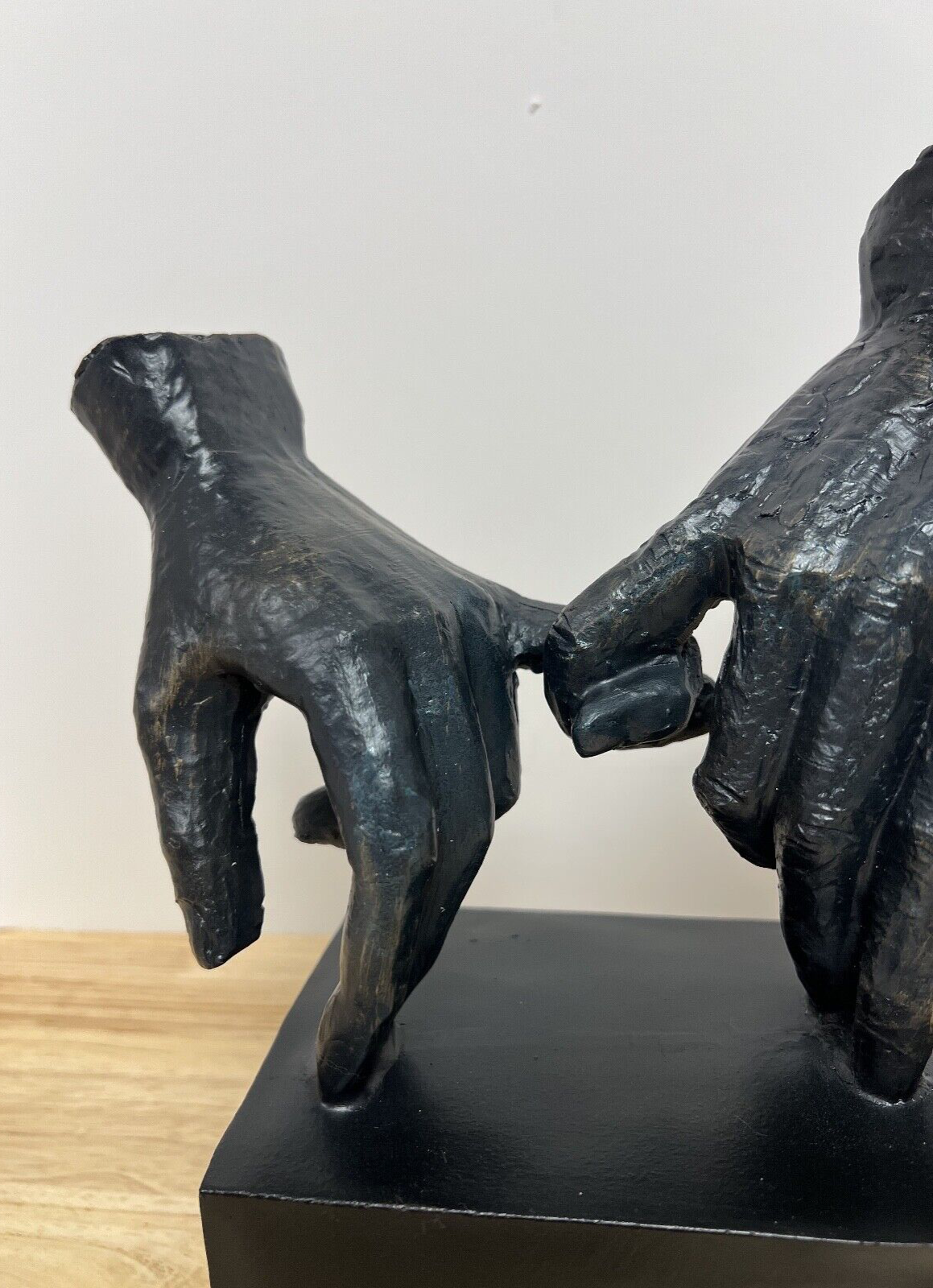 The product is a medium-sized sculpture created using pottery production technique. The statement piece depicts two hands holding a symbolic representation of love and figures, making it an inspirational and people-themed artwork. Created as a single piece, this sculpture is sure to make a bold statement in any art collection. Flint River Habitat for Humanity is a non-profit organization. Our ReStore is one of the ways we fund the mission of Habitat in our community. 100% of sales from our store are put back into our community. The majority of our merchandise is donated by members of our community. This item was donated from an estate sale. We quality inspect every item but please look over the pictures carefully. Please message if you have any questions. ~We will ship your purchase within 3 days of your payment. ~We only accept PAYPAL for payment.