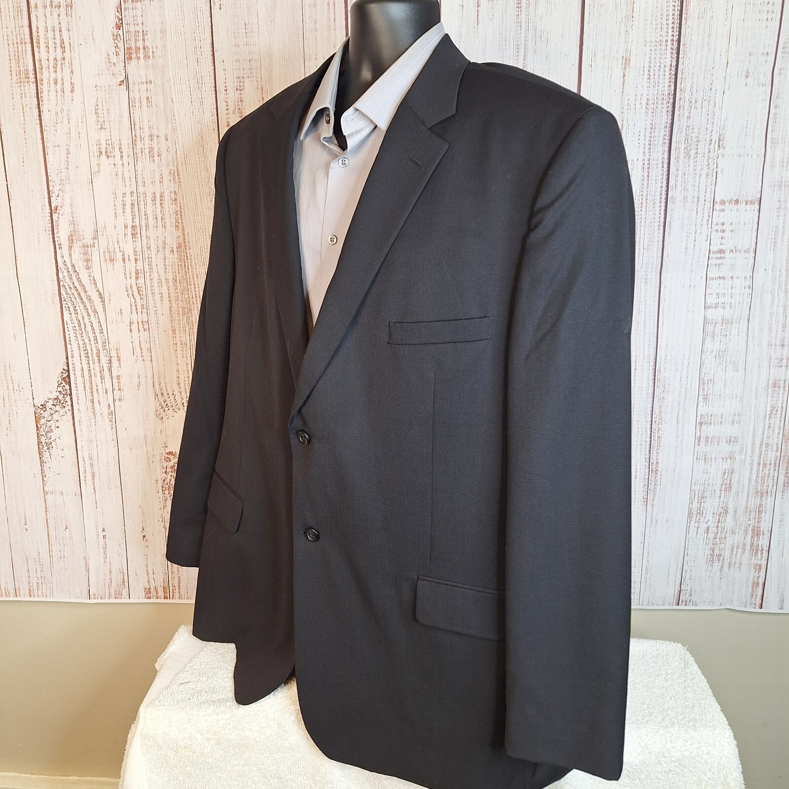 Jeffrey Banks Mens Black Textured Stripe Wool Suit 2-Piece 44R 36x30 Ventless