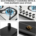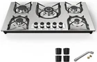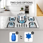 【5 Powerful Burners】【Universal gas nozzle for stoves: 9mm/0.354 inch diameter inner diameter hose】This 36 inch gas cooktop is equipped with5 powerful burners---3.3KW/3.0KW/1.75KW*2/1.0KW. It can help you save time and meet your various cooking needs. 【Two Gas Conversion】The gas stove is designed for natural gas or liquefied gas, The conversion process takes only a few minutes to complete. The automatic electric pulse ignition uses a 110V AC power, providing faster and more stable ignition speed. 【Knob Design and Excellent to Use】This 36 inch drop-in gas cooktopwith 5 independent knobs, you can control fire easily. The size of this gas cooktop is 35.44" *20.08"*2.36", it‘s perfect for kitchens. 【Superior Quality】The surface of the 5 burner gas stove is made of stainless steel panels and has cast iron grates that are hard-wearing, durable and high temperature resistant. There is also a flame failure device to bring users a good sense of experience. 【Thermocouple Protection】In case the bulit-in 5 burner propane stove is not in working condition, or the gas is accidentally switched off in the middle of using, the gas channel will be shut off automatically to avoid gas leakage accidents and ensure the safety of your family. Product Dimension: 35.44*20.08*2.36 inch Cut-out Dimension: 33.07*18.9 inch Fuel Type: Natural Gas /Liquid Propane Gas Ignition Type: Auto-ignition by electricity Voltage: 110V AC with Plug 15A Material: 304 Stainless Steel & Cast Iron Power of Each Burner: 3.3KW/3.0KW/1.75KW*2/1.0KW Powerful Burners 36 inch gas cooktop is equipped with 5 powerful burners: 3.3KW/3.0KW/1.75KW*2/1.0KW. Meet different needs of cooking. Electric Ignition This cooktop gas burner is designed for natural gas and liquid propane. The Voltage of automatic electric pulse ignition is 110V AC Melt-Proof Metal Knobs Anti melting and anti fracture.More durable compared with plastic buttons. Easy to Clean The stainless steel construction allows for easy cleaning and maintenance.Just wipe the water or the oil on the surface. 304 Stainless Steel It is made of high-quality stainless steel material and cast iron.which is stain resistant, heat-resistant, discolored and durable. Safety System To ensure to avoid gas leakage, we adopt thermocouple flameout fault system.It will turned off automatically when no flame is detected.