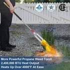 About this item 【Upgraded Propane Torch Weed Burner】 Our Weed Torch comes with an automatic ignition device. And delivers up to 2,400,000 BTU and heats-up over 4000 ºF with ease for a variety of high-heat applications. It has a large nozzle to produce a strong flame. 【Superior Igniter and Flame Control】Our propane torch's igniter has a superior ignition mechanism to help you start your flame quickly and safely. The gas control valve allows you to easily adjust flame size, and it's made of brass, which is safer for long-term use. Equipped with rubber-wrapped ergonomic handle to ensure comfortable use and maximum durability. 【cCSAus Certified】Our Propane Torch comes with a valve seal ring manufactured in Germany and a 10 FT hose (CSA LISTED). 100% passed high-standard quality inspection before leaving the factory to ensure safe use.Reverse thread POL safety valve with black handwheel, screwed directly into propane tank without wrench(loose by turning right, tight by turning left). 【Durable Construction & Environmental Friendly】Our Propane Torch is made of refractory steel for durability. Three layer PVC coated rubber hose is both oil and scratch proof.100% passed the high standard leak test before leaving the factory and each has a CSA certification mark.With the propane weed torch you can solve the weeds between hard to reach crevice efficiently. It is Chemical Free! Do no harm to mother nature. 【10FT Hose for Extra Reach】Our Propane Blow Torch comes with an extended 10 FT hose (CSA Certified), improving maneuverability & extension when working outdoors or on big projects.Reducing unnecessary bending and crouching while landscaping, and the chances of sustaining burns or other injury when igniting a grill or campfire. 【Multipurpose Tool】Our Propane Weed Burner is an excellent tool. You can easily burn weeds and stumps, melt snow, light fires, do wood grain burning, soften asphalt, remove paint from non-flammable surfaces and more with this flamethrower. It is ideal for home, garden, farm, industrial and construction use. 【3-Year Quality Warranty】We provide the 36-month warranty for the weed torch, replace a new set directly once it has any quality problems.If you encounter any product after-sales problems, you can contact GAGITER support team at any time, we will give you a satisfactory solution.