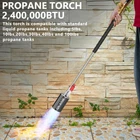 【With A Storage Bag】Propane torch comes with a beautiful storage bag. Can protect the torch from damage. Convenient to carry and store, accommodating the torch and other accessories. 【34" Long Arm & Comfortable Nylon Handle】Compared with other 27 inch weed burners, our weed torch adopts a 34 inch lengthened design, without bending or crouching. Equipped with an ergonomic nylon handle to increase comfort during use. 【Powerful Propane Weed Torch】Our Weed Flame Torch delivers up to 2,400,000 BTUs and heats-up to over 4000 ºF with ease for a variety of High-Heat applications and it has a large nozzle produce strong flame with smooth operation which save hours of hard work. 【10FT Hose for Extra Reach & Safe】The Weed Torch Wand comes with an extended 10 FT hose (CSA Listed). Allows for improved maneuverability & extension when working outdoors or on big projects. Reducing unnecessary bending and crouching while landscaping, and the chances of sustaining burns or other injury when igniting a grill or campfire. 【High Quality & Multipurpose】Blow Torch is made of refractory steel for durability. Three layer PVC coated rubber hose is both oil and scratch proof.Perfect for Weeds, Roofing, Welding, Asphalt Paving, Wood Treatment, Melting Snow & Ice, Thawing Pipes, Burning Brush Piles & Other Farm, Garden, Industrial & Construction Jobs. 【No Chemical Weeding Solution】With the propane weed torch you can solve the weeds between hard to reach crevice efficiently. It is Chemical Free! Do no harm to mother nature.Environmentally Friendly. 【cCSAus Certified】The Propane Torch comes with a valve seal ring manufactured in Germany (CSA certificate ), Working PSI: 350 lbs.Reverse thread POL safety valve with black handwheel, screwed directly into propane tank without wrench(loose by turning right, tight by turning left). Contains internal safety mechanisms that restricts 99% of propane flow,in case of leakage.Fitted with a 7/8"-14 TPI male propane bottle connection with a steel tip diameter of 2 5/8". 【Upgraded Propane Torch】Compared with the old method of using flint striker to start a flame, this Weed Burner Torch comes with upgrade self ignition button to help you start the flame easy and safely. Gas valve knob allows you to easily adjust the flame intensity. 【3-Years Warranty】We provide the 36-month warranty for the weed torch, replacing a new set directly once it has any quality problems. If you encounter any product after-sales problems, you can contact support team at any time. Professional team is always on line.(PROPANE TANK ISN’T INCLUDED)