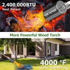 【With A Storage Bag】Propane torch comes with a beautiful storage bag. Can protect the torch from damage. Convenient to carry and store, accommodating the torch and other accessories. 【Upgraded Propane Torch】Compared with the old method of using flint striker to start a flame, this Weed Burner Torch comes with upgrade self ignition button to help you start the flame easy and safely. Gas valve knob allows you to easily adjust the flame intensity. 【34" Long Arm & Comfortable Nylon Handle】Compared with other 27 inch weed burners, our weed torch adopts a 34 inch lengthened design, without bending or crouching. Equipped with an ergonomic nylon handle to increase comfort during use. 【Powerful Propane Weed Torch】Our Weed Flame Torch delivers up to 2,400,000 BTUs and heats-up to over 4000 ºF with ease for a variety of High-Heat applications and it has a large nozzle produce strong flame with smooth operation which save hours of hard work. 【10FT Hose for Extra Reach & Safe】The Weed Torch Wand comes with an extended 10 FT hose (CSA Listed). Allows for improved maneuverability & extension when working outdoors or on big projects. Reducing unnecessary bending and crouching while landscaping, and the chances of sustaining burns or other injury when igniting a grill or campfire. 【High Quality & Multipurpose】Blow Torch is made of refractory steel for durability. Three layer PVC coated rubber hose is both oil and scratch proof.Perfect for Weeds, Roofing, Welding, Asphalt Paving, Wood Treatment, Melting Snow & Ice, Thawing Pipes, Burning Brush Piles & Other Farm, Garden, Industrial & Construction Jobs. 【No Chemical Weeding Solution】With the propane weed torch you can solve the weeds between hard to reach crevice efficiently. It is Chemical Free! Do no harm to mother nature.Environmentally Friendly. 【cCSAus Certified】The Propane Torch comes with a valve seal ring manufactured in Germany (CSA certificate ), Working PSI: 350 lbs.Reverse thread POL safety valve with black handwheel, screwed directly into propane tank without wrench(loose by turning right, tight by turning left). Contains internal safety mechanisms that restricts 99% of propane flow,in case of leakage.Fitted with a 7/8"-14 TPI male propane bottle connection with a steel tip diameter of 2 5/8". 【3-Years Warranty】We provide the 36-month warranty for the weed torch, replacing a new set directly once it has any quality problems. If you encounter any product after-sales problems, you can contact support team at any time. Professional team is always on line.(PROPANE TANK ISN’T INCLUDED)