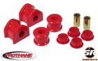 Prothane 6-1162 Sway Bar & Endlink Bushing 20mm Kit For 05-10 Ford Mustang Part # 6-1162 Prothane Fitment 2005-2010 Ford Mustang One Set Will Cover the Left and Right Side Fits an 20mm Sway Bar Only Prothane Specs Frame Bushings Included: No Frame Bushings Greasable: No Rear Sway Bar Diameter (in.): 0.787 in. Rear Sway Bar Diameter (mm): 20.00 mm End Links Included: No Bushing Material: Polyurethane Bushing Color: Red Quantity: Sold as a kit. Prothane Kit Contents 2 of Sway Bar Bushings - 62383 (20mm) 4 of Upper Link Bushings - 63067 2 of Lower Link Bushings - 63068 2 of Metal Sleeves - 60854 (3/4 X 12mm X 1.50 inches) 3 of Super Grease - 19-1750-001 A sway bar bushing plays a huge role in your suspension, so don't settle for rubber. Prothane Sway Bar bushings are made of polyurethane, much more durable material for suspension bushings than rubber. Polyurethane does not break down due to road grime, weather or oils the way the rubber can. Have the peace of mind knowing you have a long-lasting part on your sway bar with Prothane's sway bar bushings. Prothane's polyurethane sway bar bushings provide a secure grip on the sway bar and do not warp over time. With this snug grip, your vehicle will see a performance boost similar to installing a larger sway bar. A sway bar's function is to maintain the maximum amount of road contact during tires. The sway bar is held to the frame of the vehicle with a sway bar bushing. Original Equipment rubber can warp and/or crack, losing its grip on the bar. This causes your sway bar to lose its effectiveness. Just look at the old rubber sway bar bushing to the left. Imagine how good of a grip that thing could keep on a sway bar. Go with Polyurethane. The metal sway bar rotates inside the sway bar bushings, so be sure to use the supplied Prothane's Super Grease to lubricate the bushings during installation. Its super important that you lubricate each bushing well to prevent any squeaking.